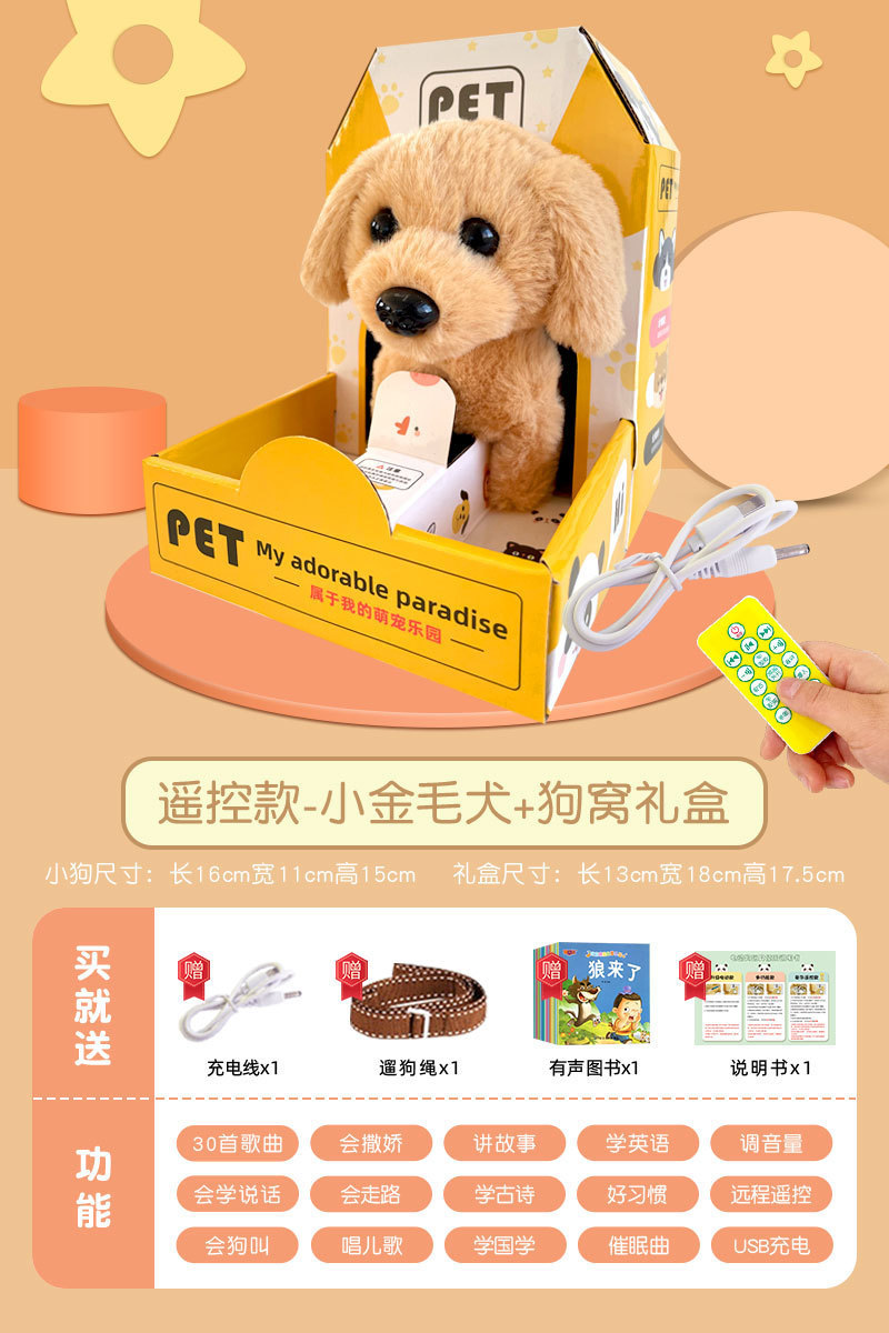• [원격제어모델 - 리틀 골든 리트리버] 1000 조기교육/말하기 학습/동요 노래/이야기/개 짖는 소리/요염/걷기