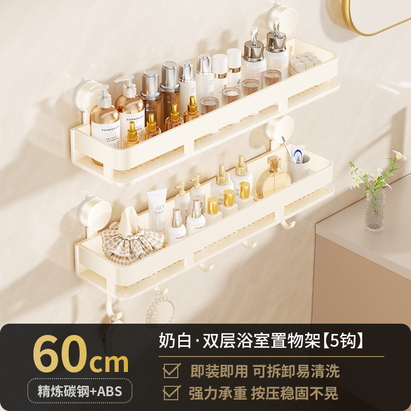 • [흡착컵-크림화이트] 더블 레이어 60cm+후크5개+타월걸이1개
