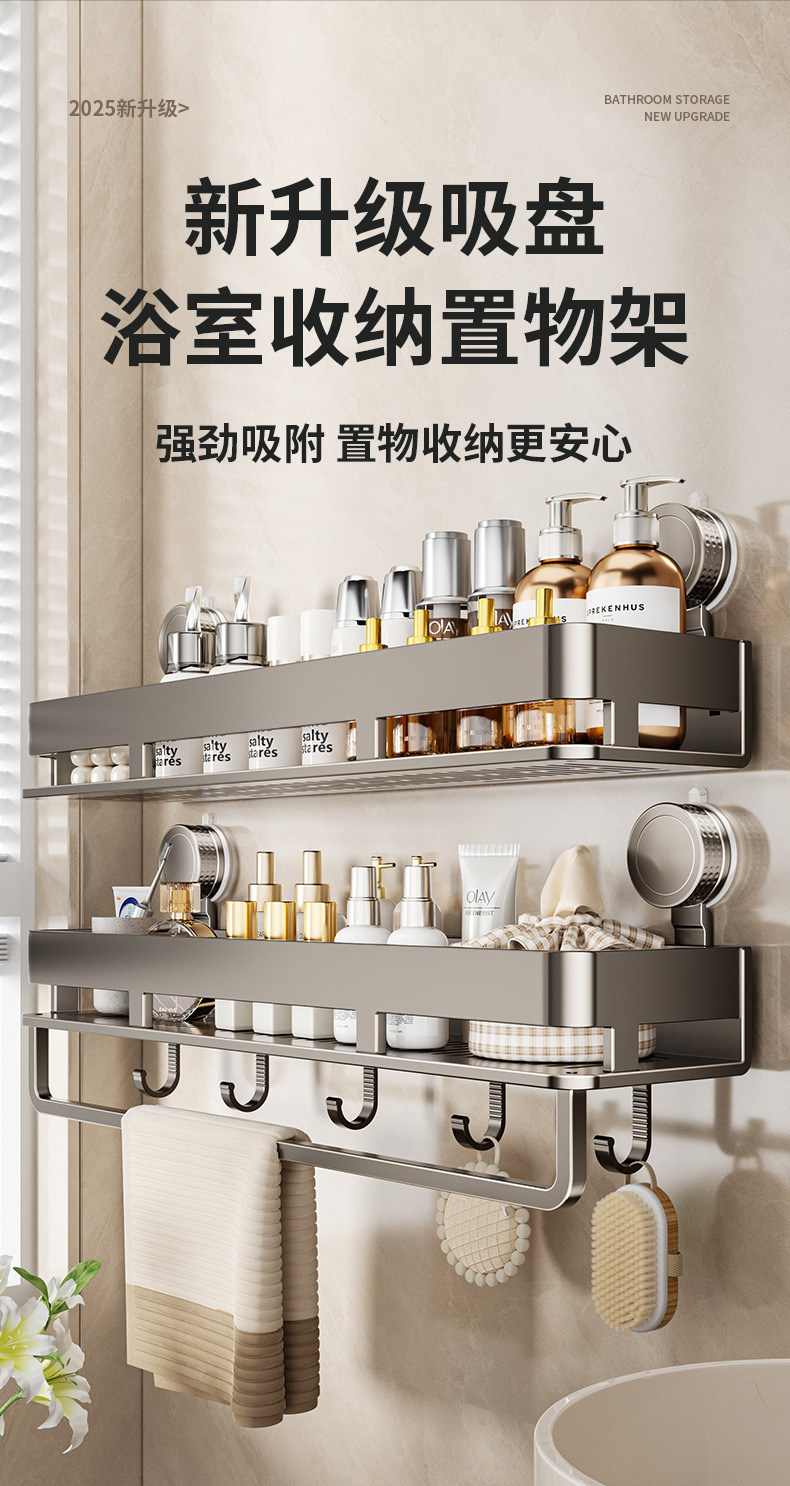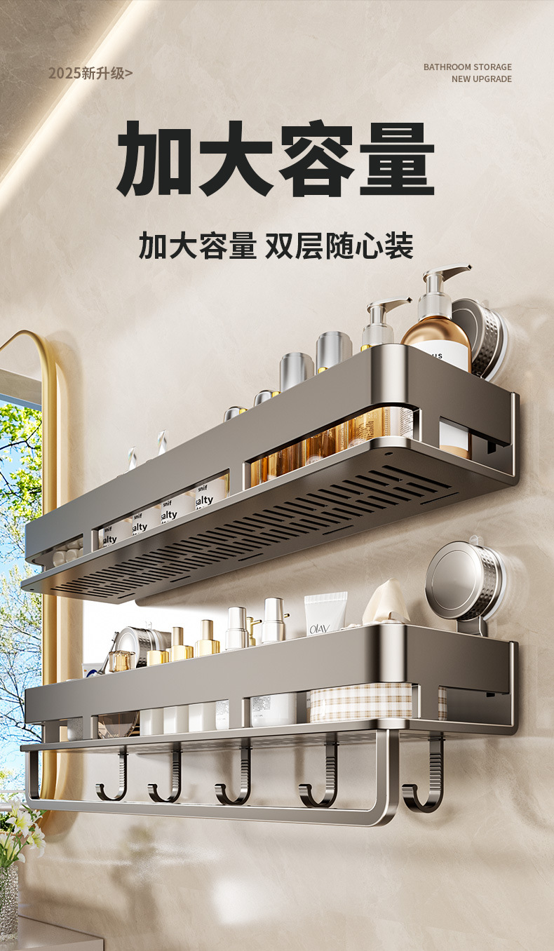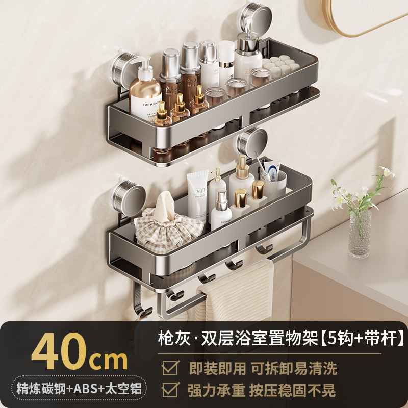 • [흡착컵-건그레이] 더블 레이어 40cm+후크5개+타월걸이1개