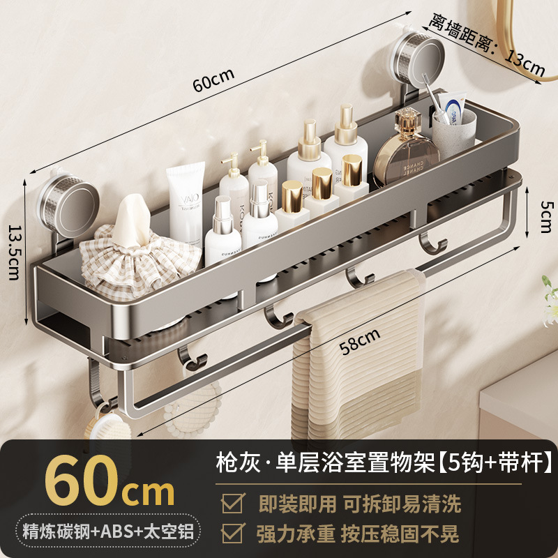 • [흡착컵-건그레이] 단층 60cm+후크5개+타월걸이1개