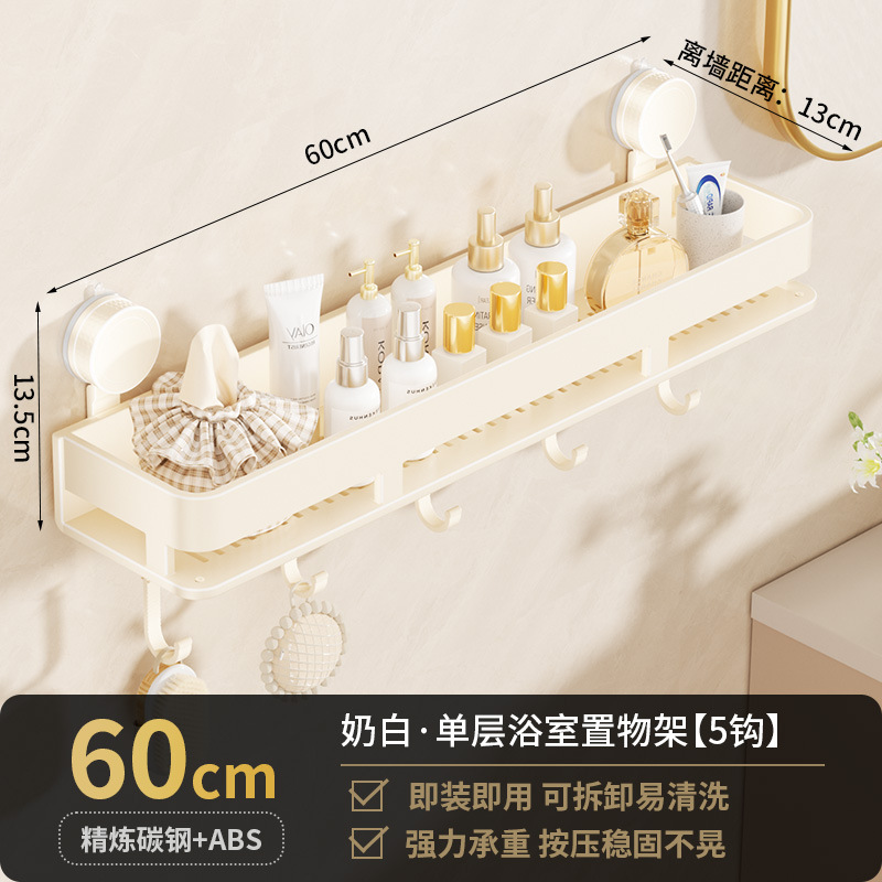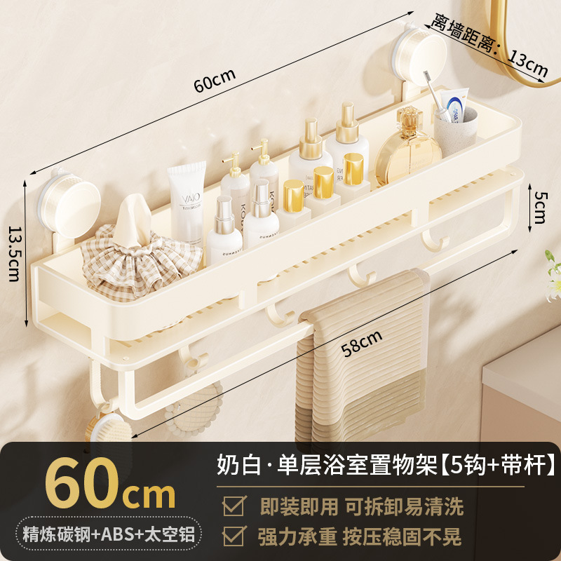 • [흡착컵-크림화이트] 싱글레이어 60cm+후크5개+타월걸이1개