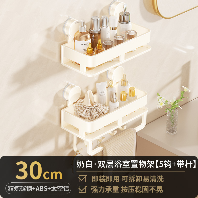 • [흡착컵-크림화이트] 더블 레이어 30cm+후크5개+타월걸이1개