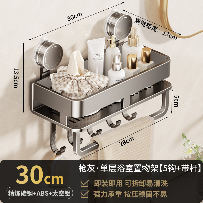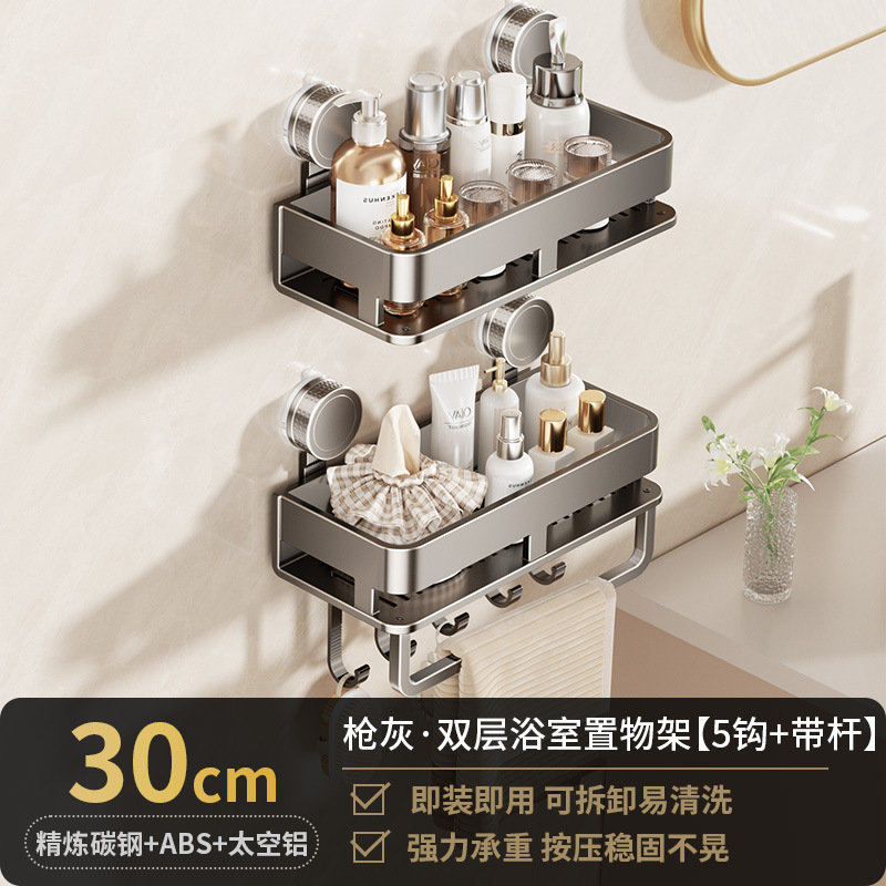 • [흡착컵-건그레이] 더블 레이어 30cm+후크5개+타월걸이1개