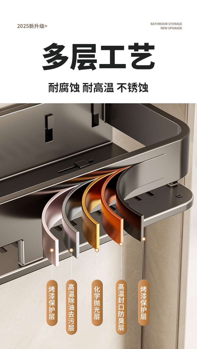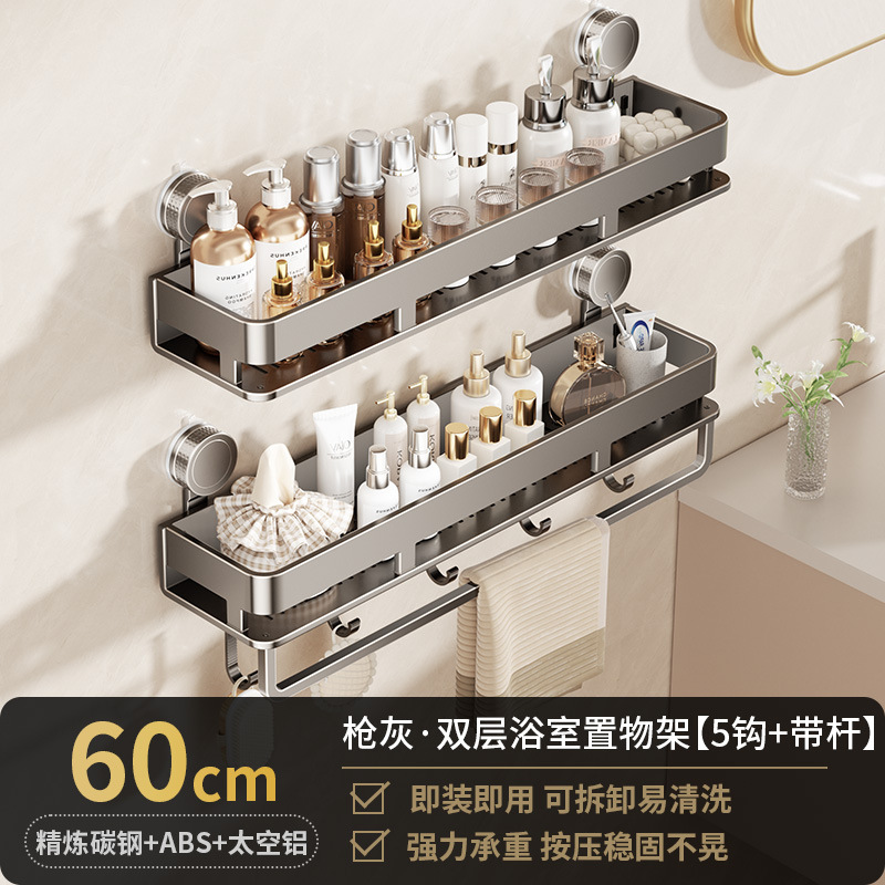 • [흡착컵-건그레이] 더블 레이어 50cm+후크5개+타월걸이1개