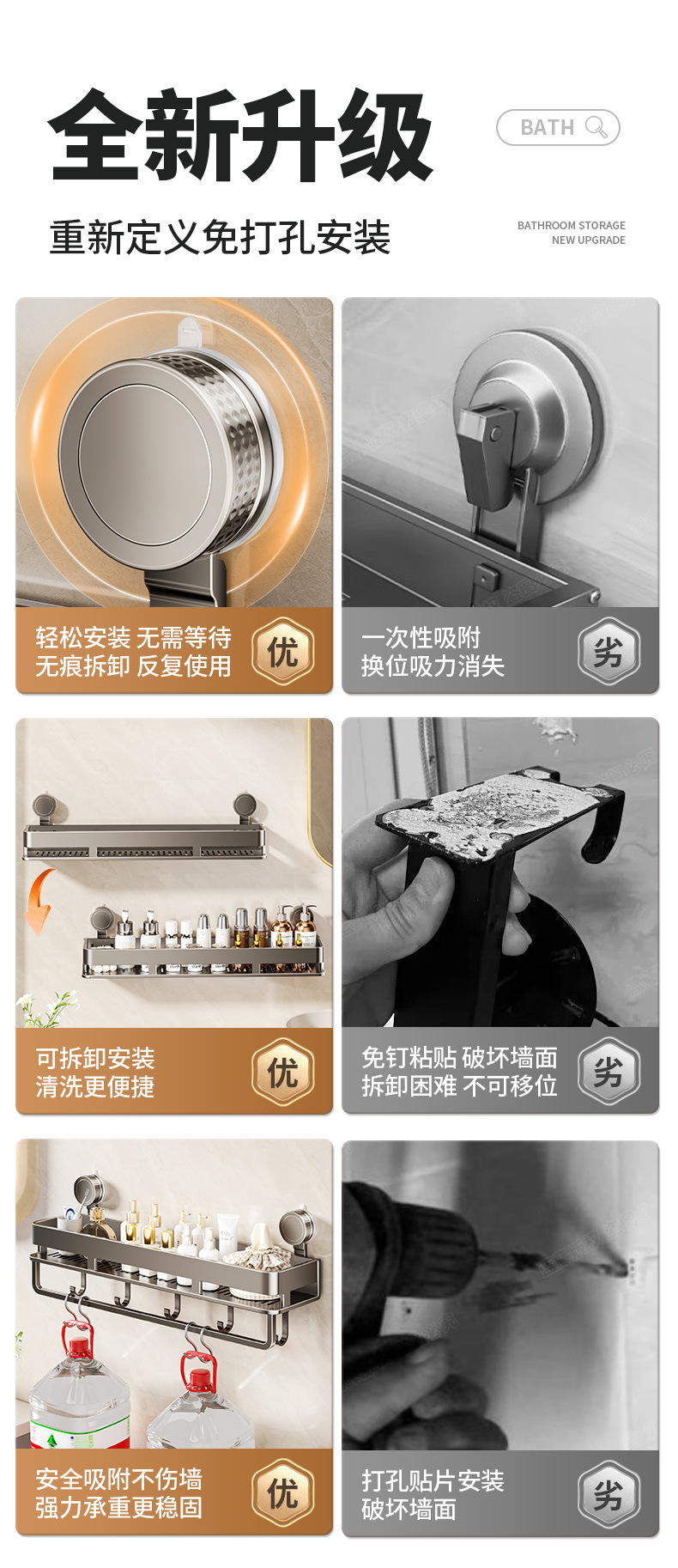 욕실 흡입 컵 보관 랙 세면대 욕실 펀치없는 벽걸이 형 화장실 화장품 보관 랙스토어 가기