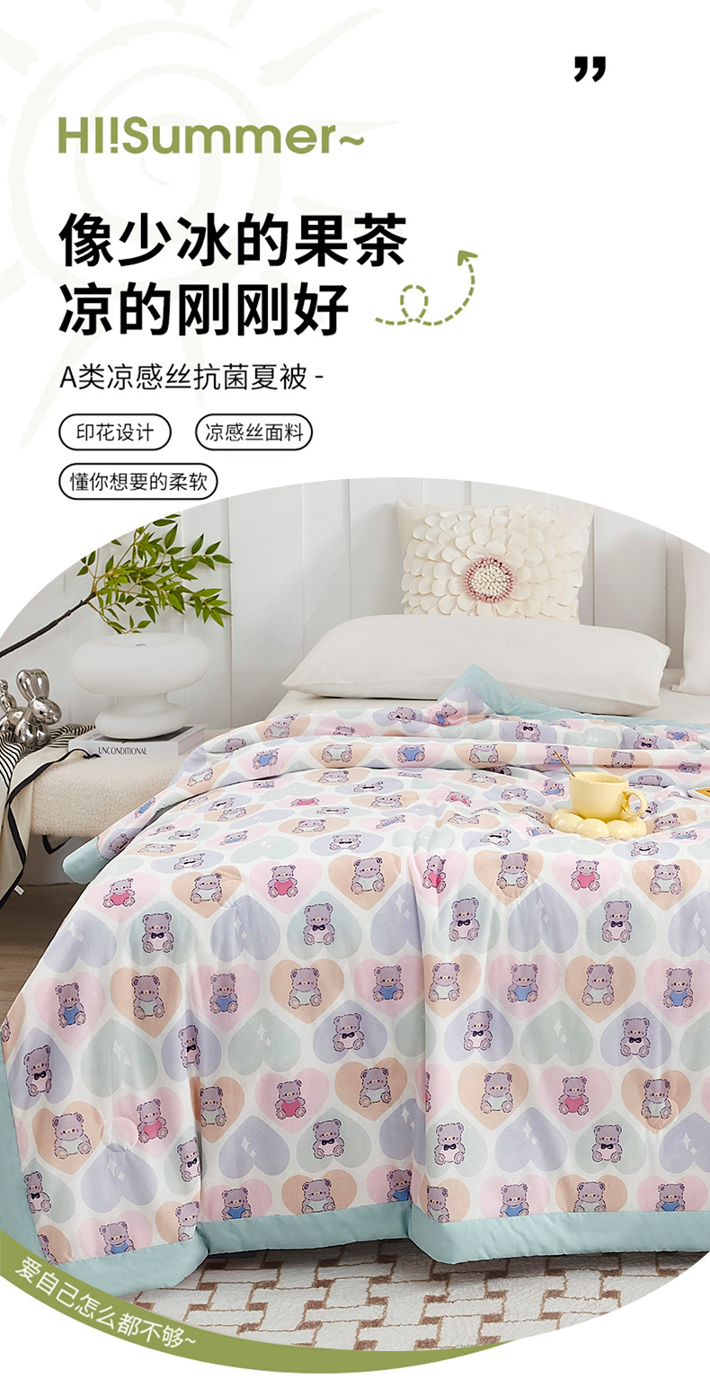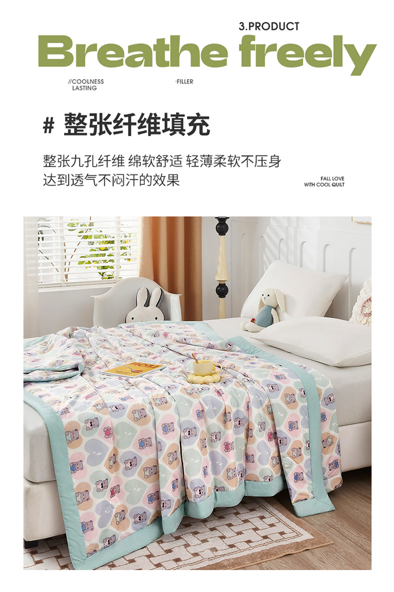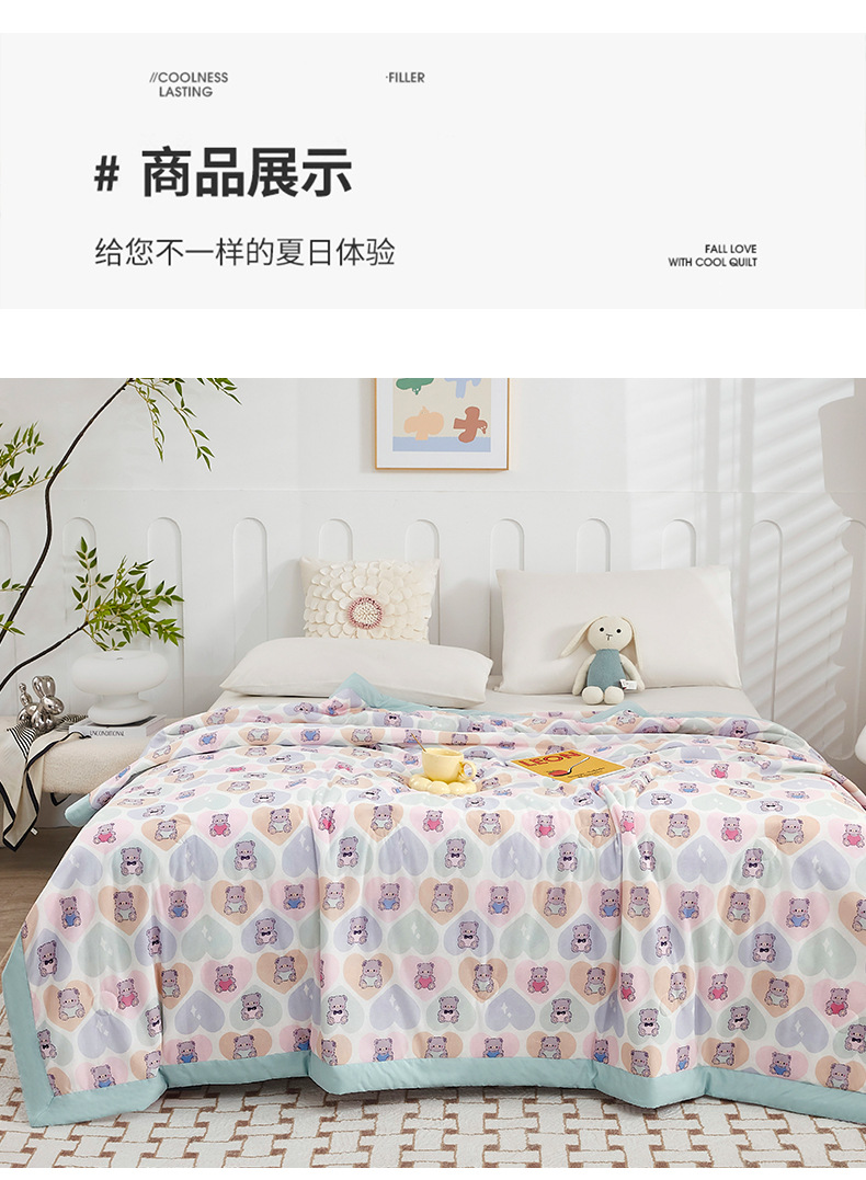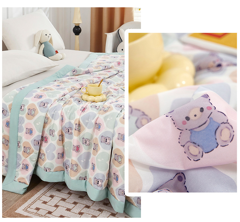 어린이 여름 이불 에어컨 이불 얼음 실크 여름 이불 유치원 아기 여름 시원한 느낌 얇은 이불 기계 세탁 가능 Morandi Bear