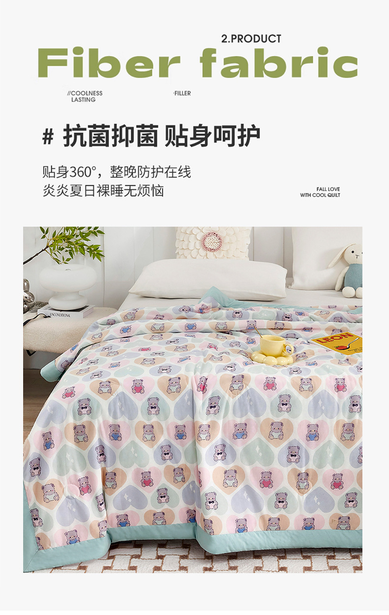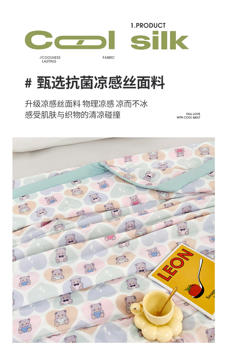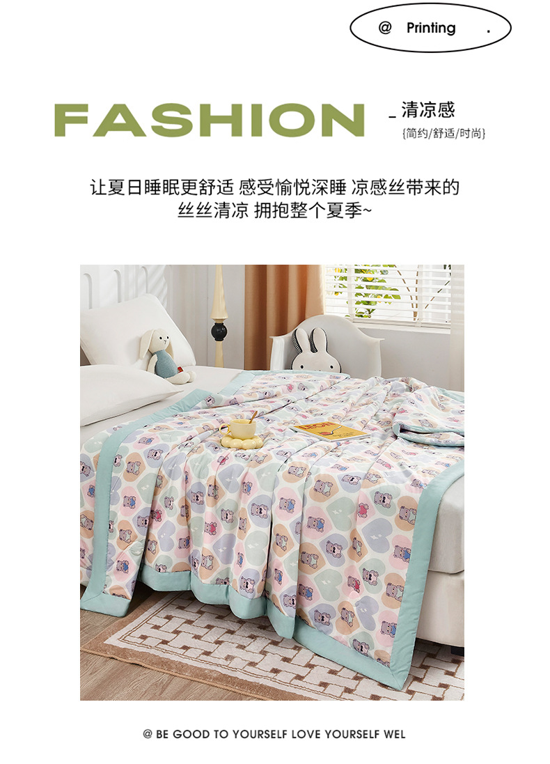어린이 여름 이불 에어컨 이불 얼음 실크 여름 이불 유치원 아기 여름 시원한 느낌 얇은 이불 기계 세탁 가능 Morandi Bear