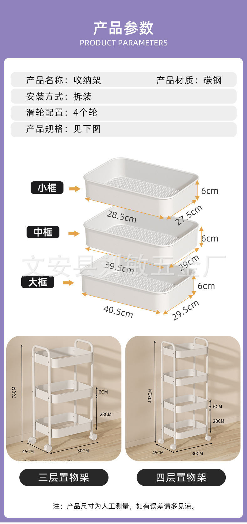 바닥에 놓인 다층 트롤리 보관 랙 이동식 이중 팔걸이 보관 랙 아기 용품 보관 랙 도매스토어 가기