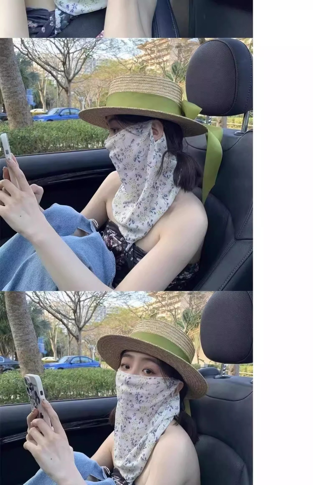 여성을 위한 새로운 여름 스타일 풀 페이스 및 넥 프로텍션 올인원 자외선 차단 마스크, 귀에 걸 수 있는 자외선 차단 야외 아이스 실크 페이스 마스크