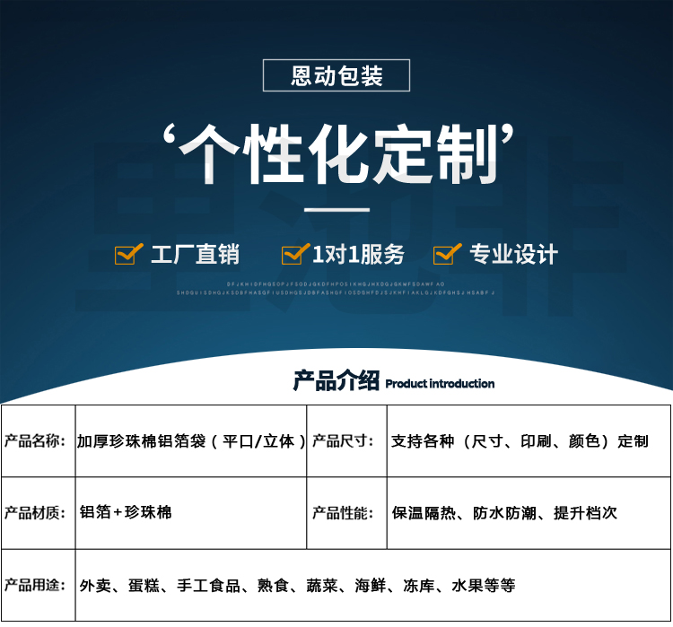 단일 사용을 위한 단열 가방, 입체적인 두꺼운 알루미늄 필름, 진주 면 케이크, 해산물, 자흡식 기타
