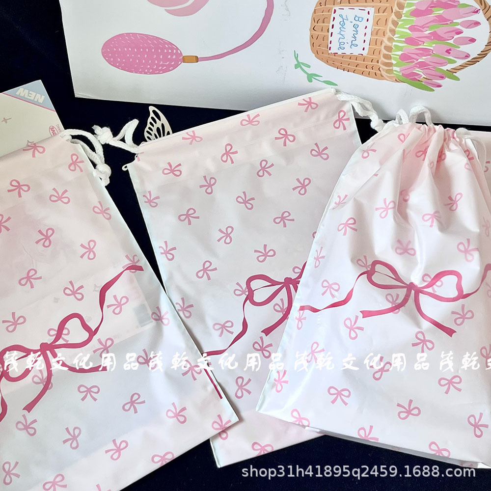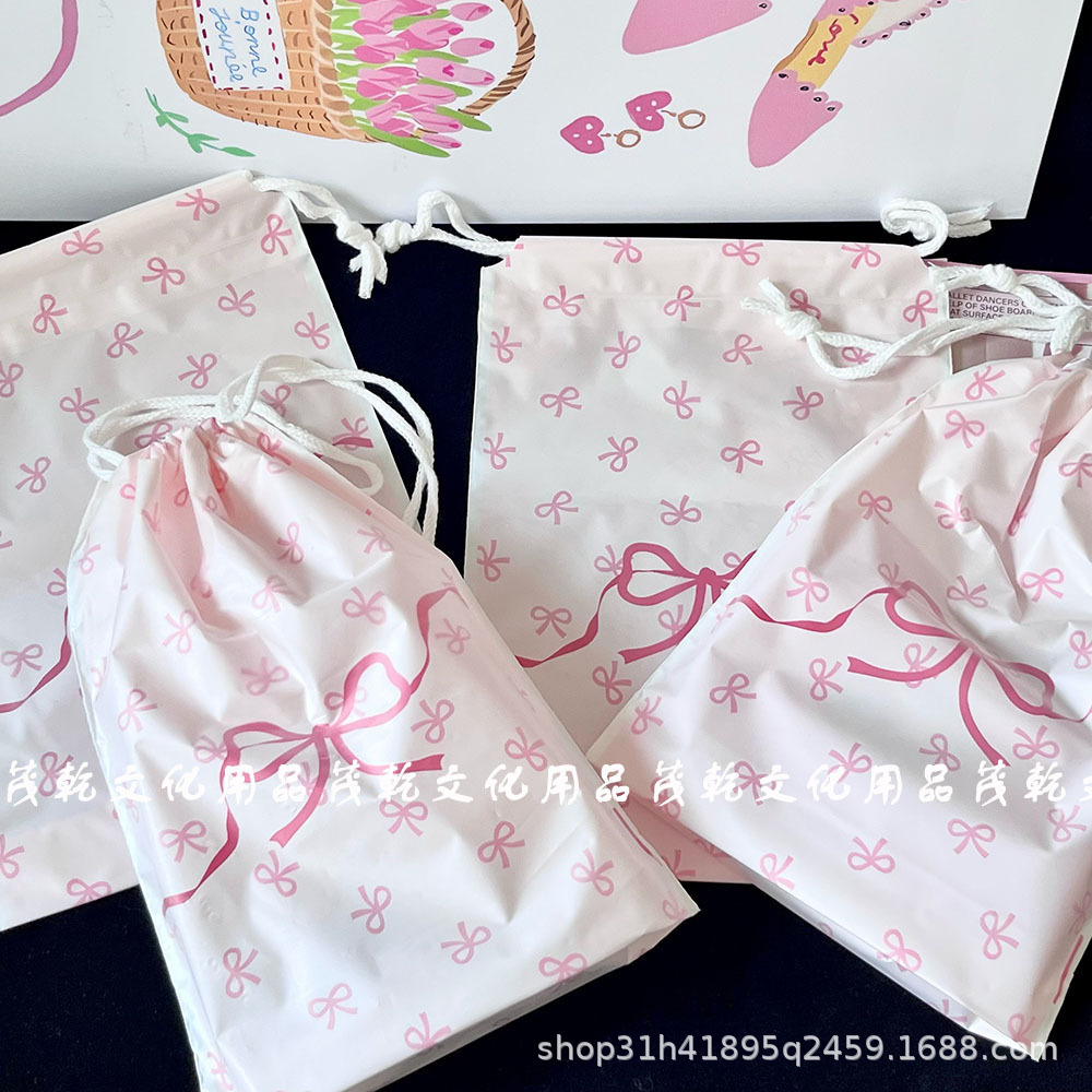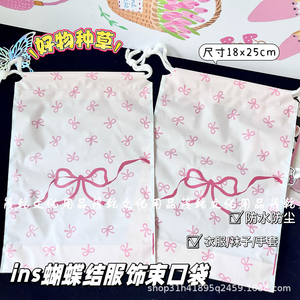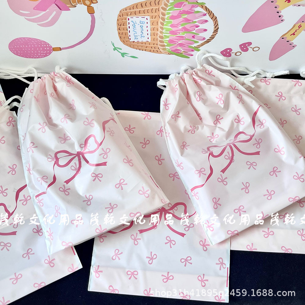 Ins 핑크 나비 끝 입 drawstring 가방 고급 포장 가방 카드 포장 선물 가방 drawstring 저장 가방