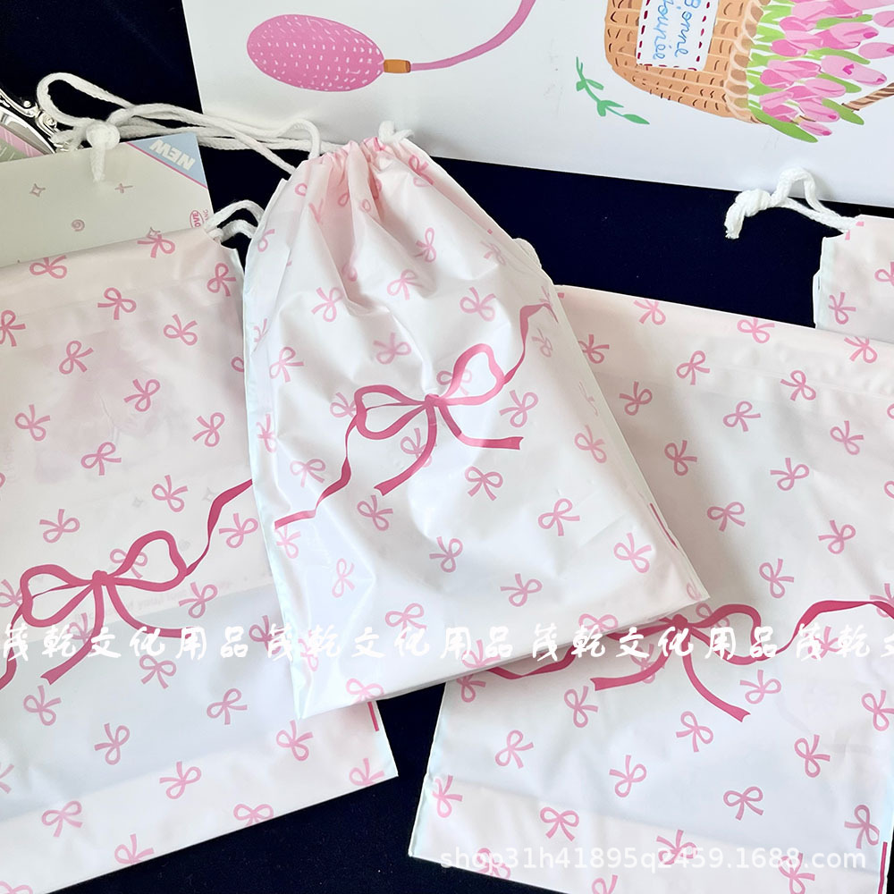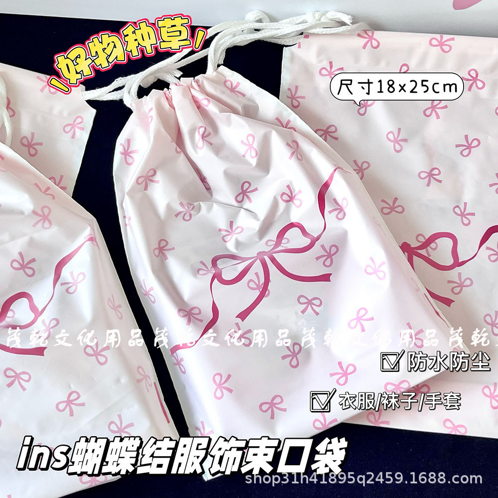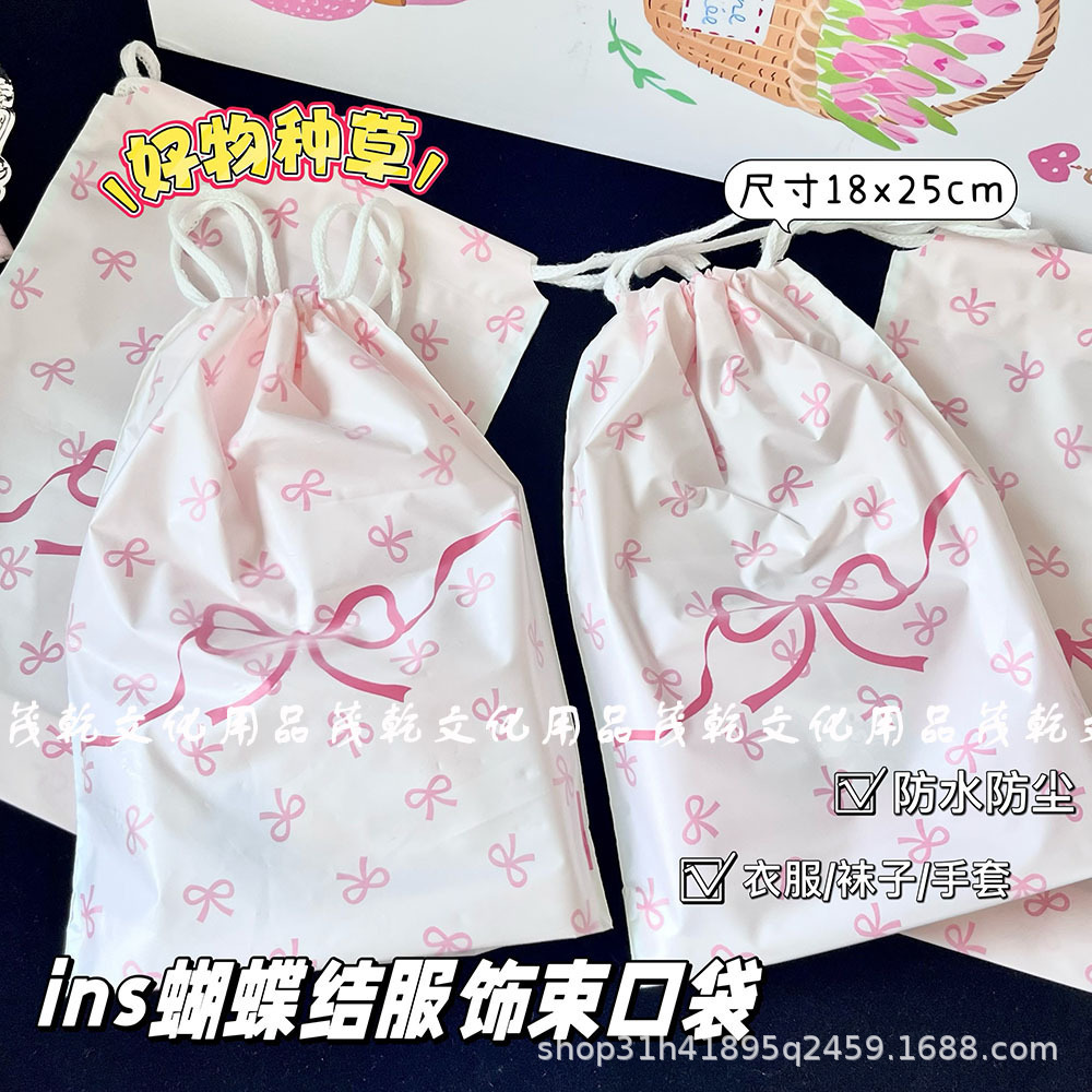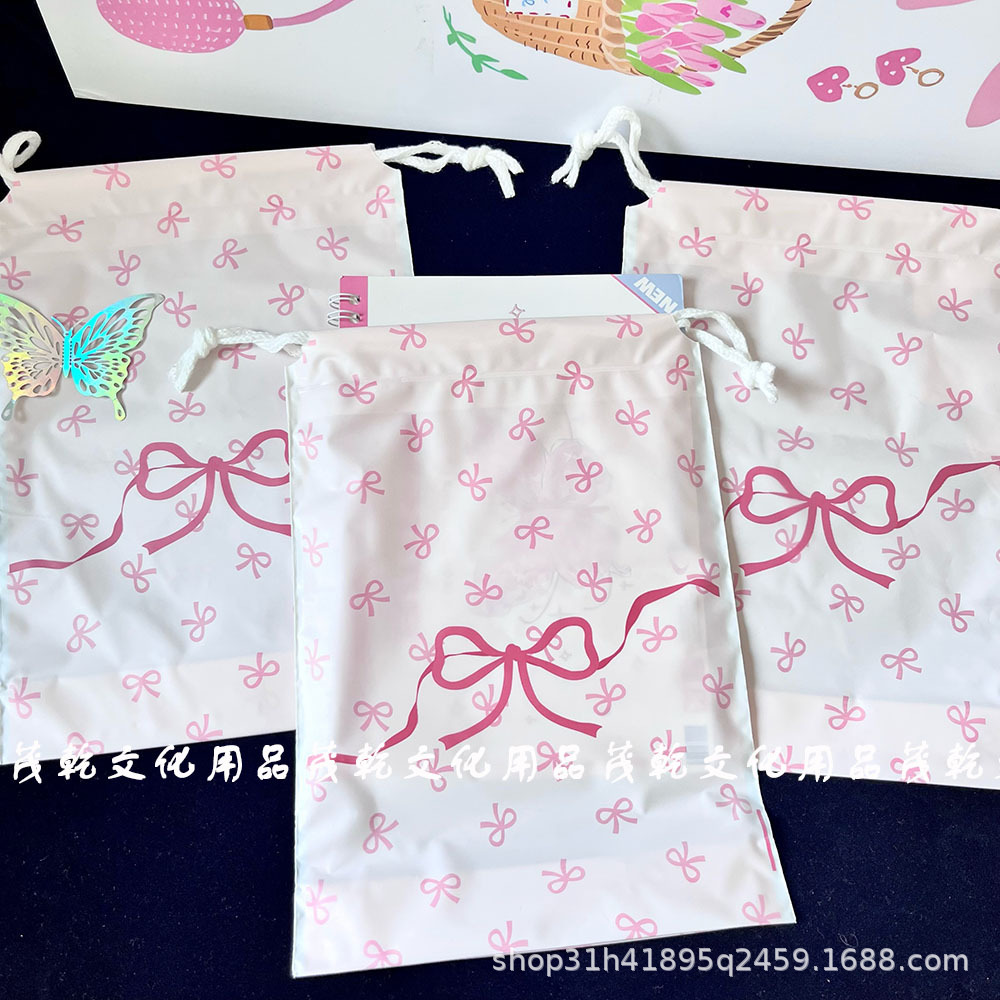 Ins 핑크 나비 끝 입 drawstring 가방 고급 포장 가방 카드 포장 선물 가방 drawstring 저장 가방