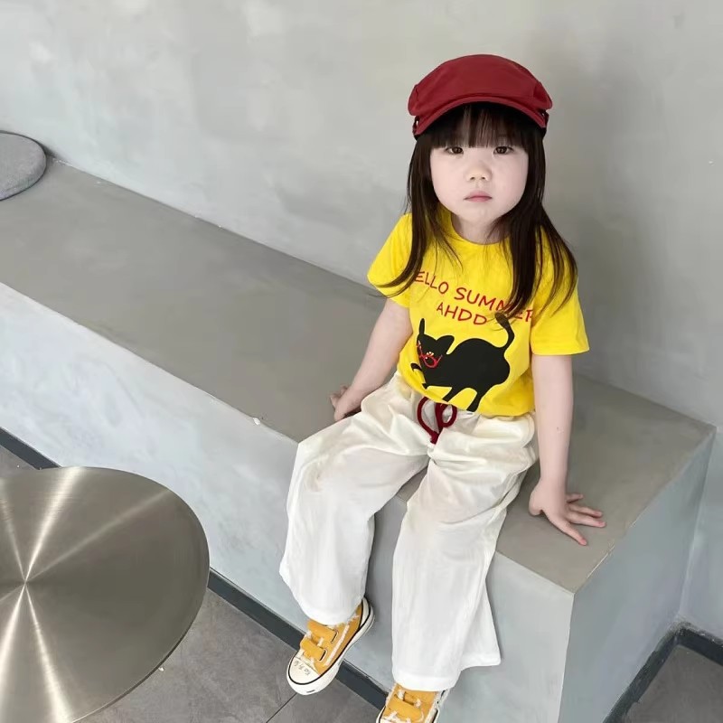 소년과 소녀 여름 옷 어린이 바지 캐주얼 루즈 코튼 화이트 캐주얼 바지 여름