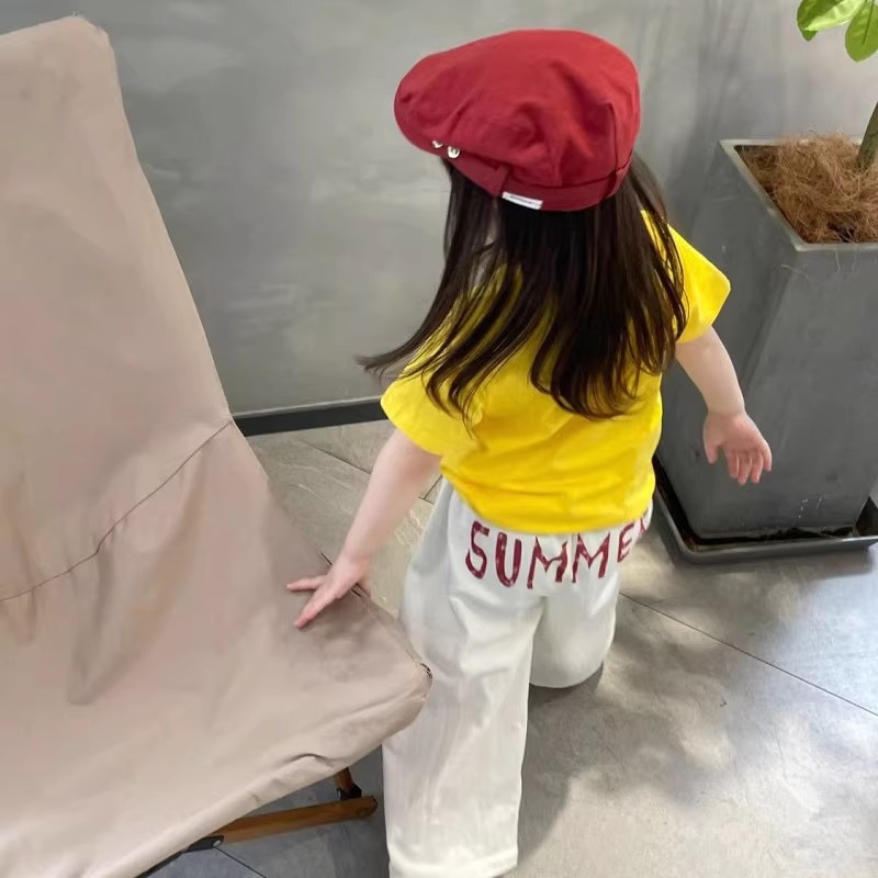 소년과 소녀 여름 옷 어린이 바지 캐주얼 루즈 코튼 화이트 캐주얼 바지 여름스토어 가기