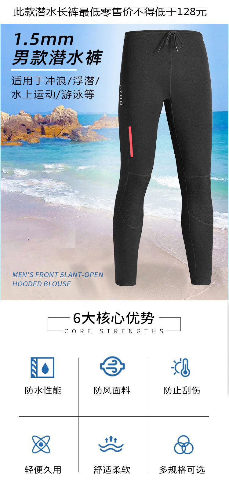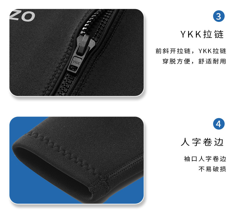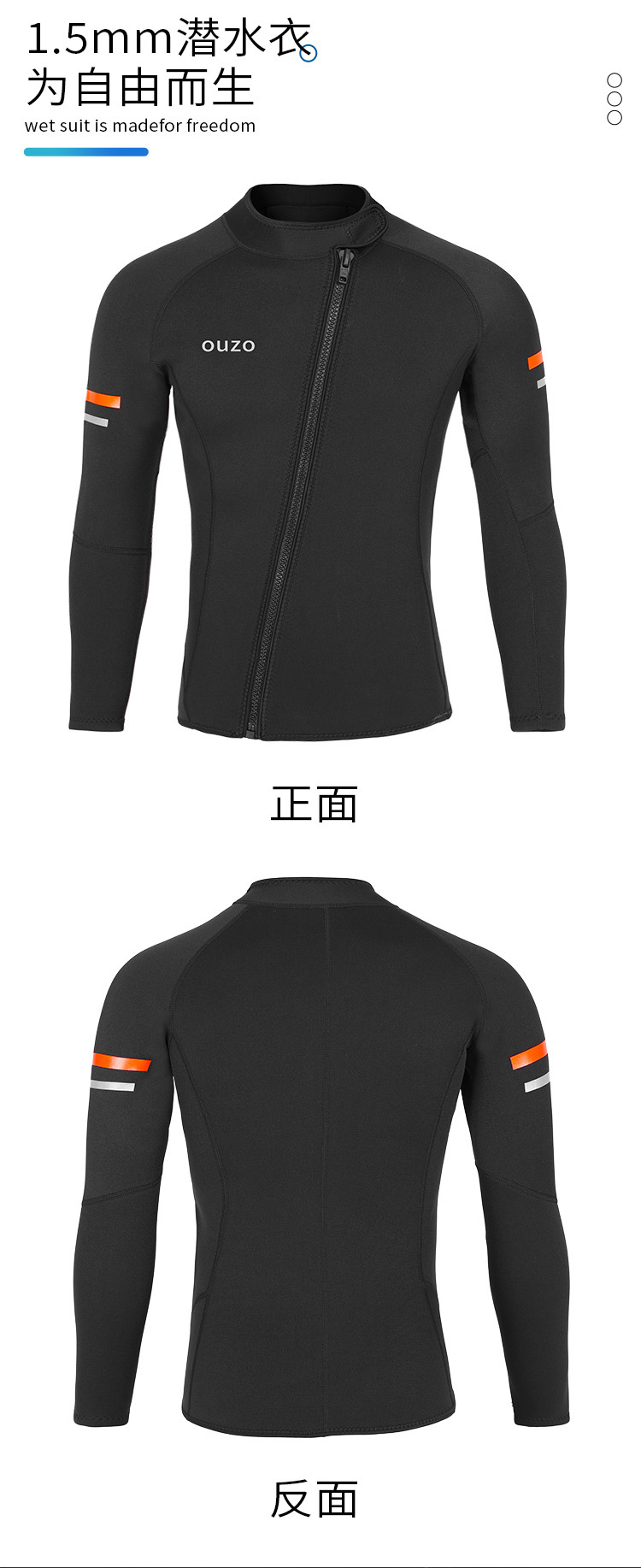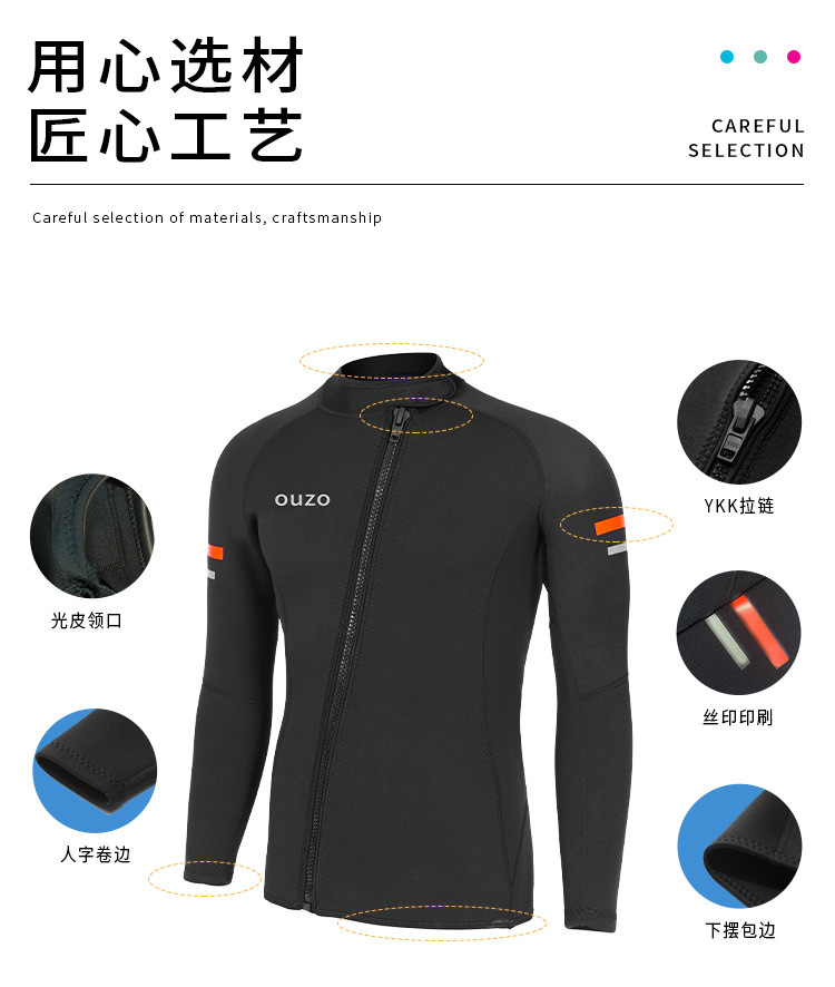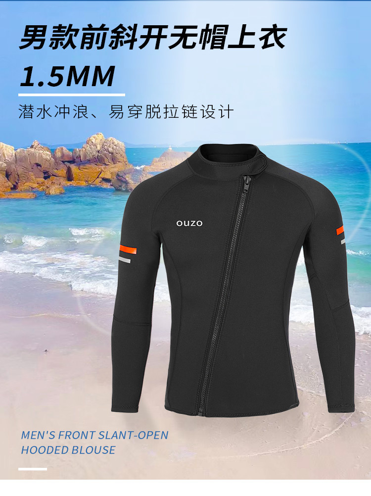 OUZO 1.5mm潜水服男款长袖潜水上衣分体防晒水母衣冬泳衣冲浪服