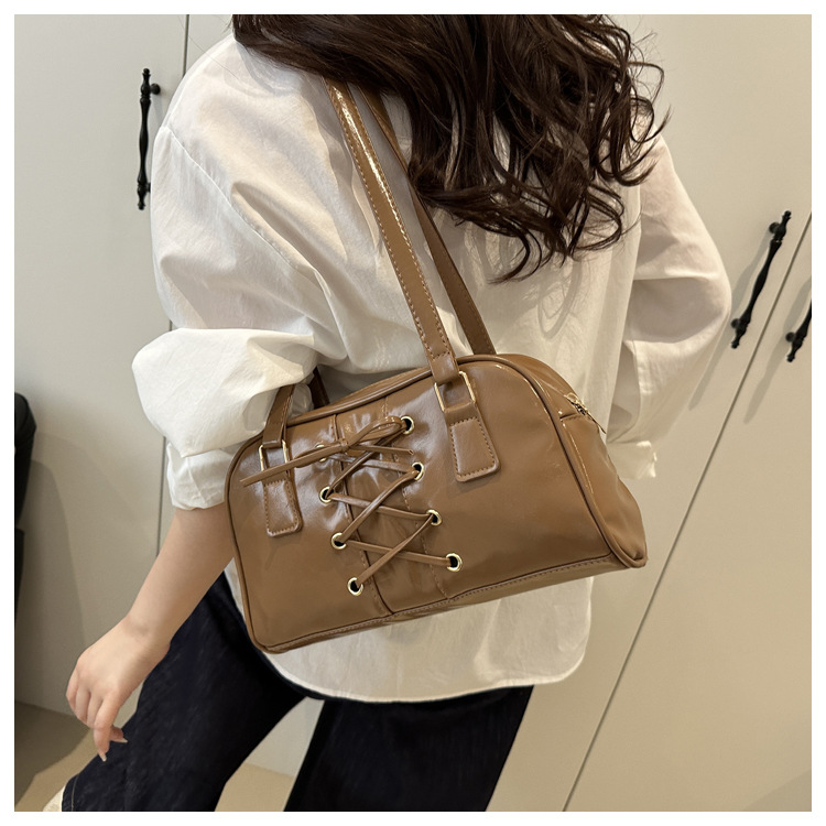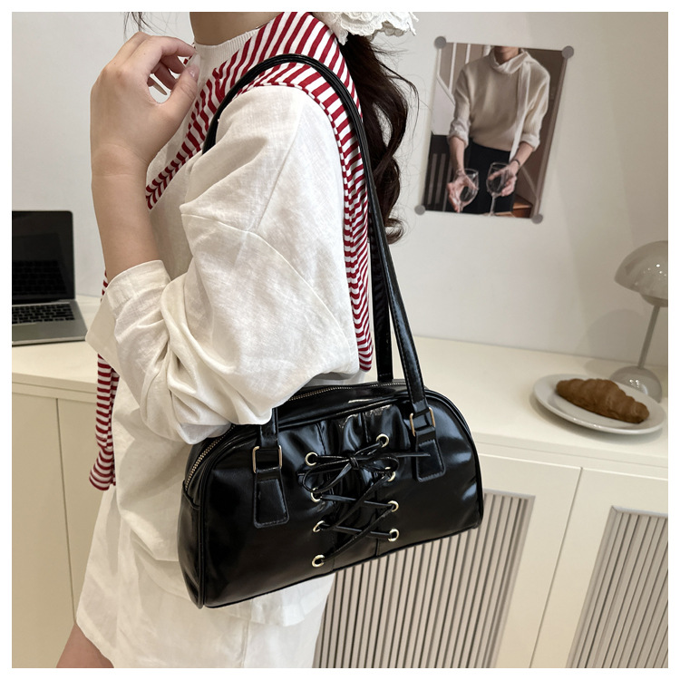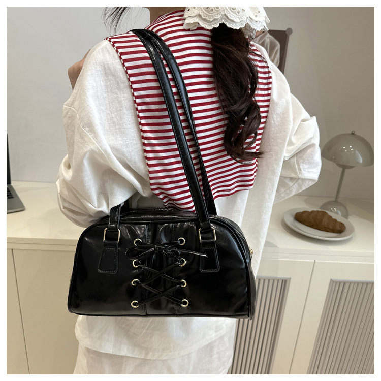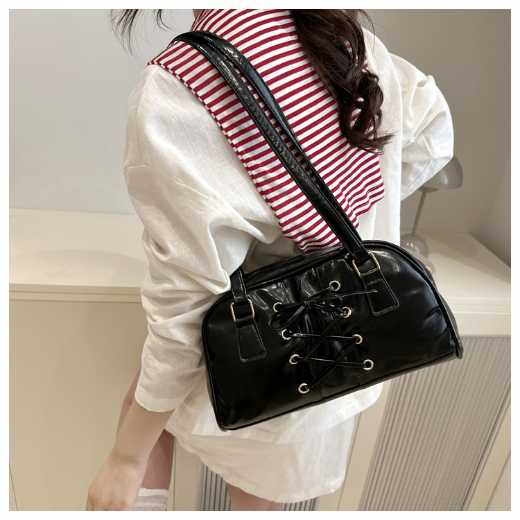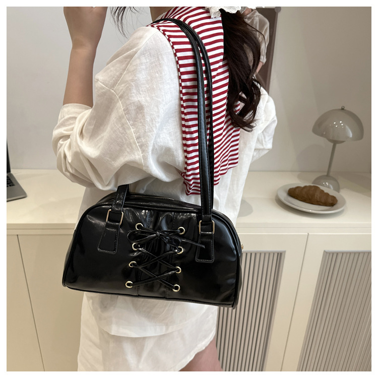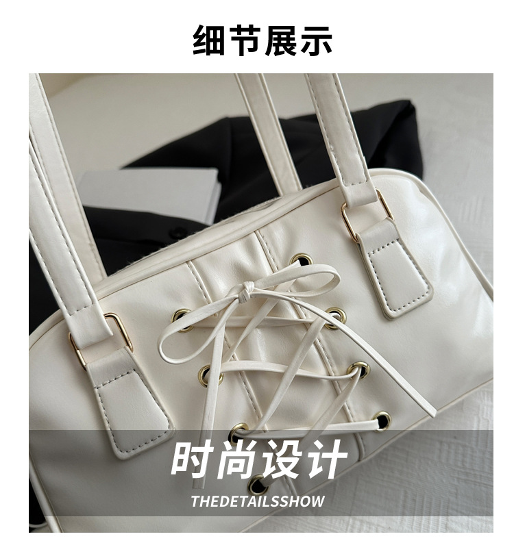 2025 휴대용 캐주얼 여행 솔리드 컬러 새로운 통근 대용량 보우 심플 겨드랑이 싱글 숄더 핸드백 여성용스토어 가기
