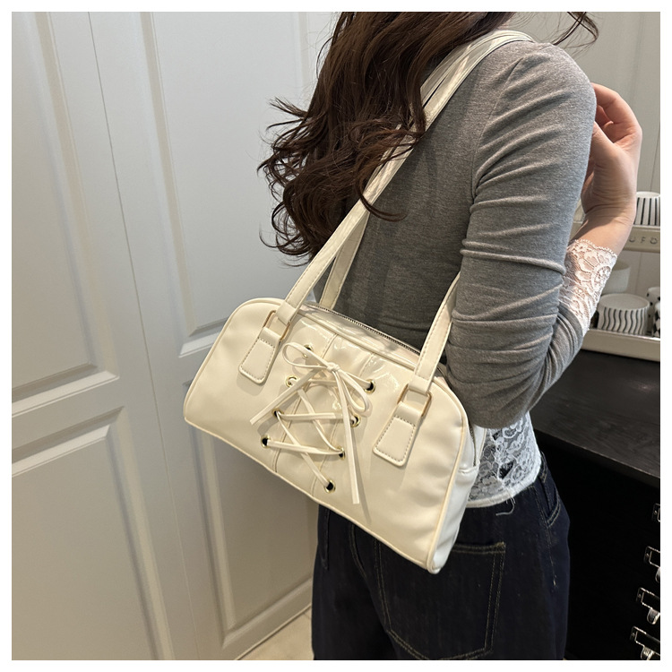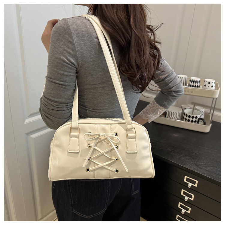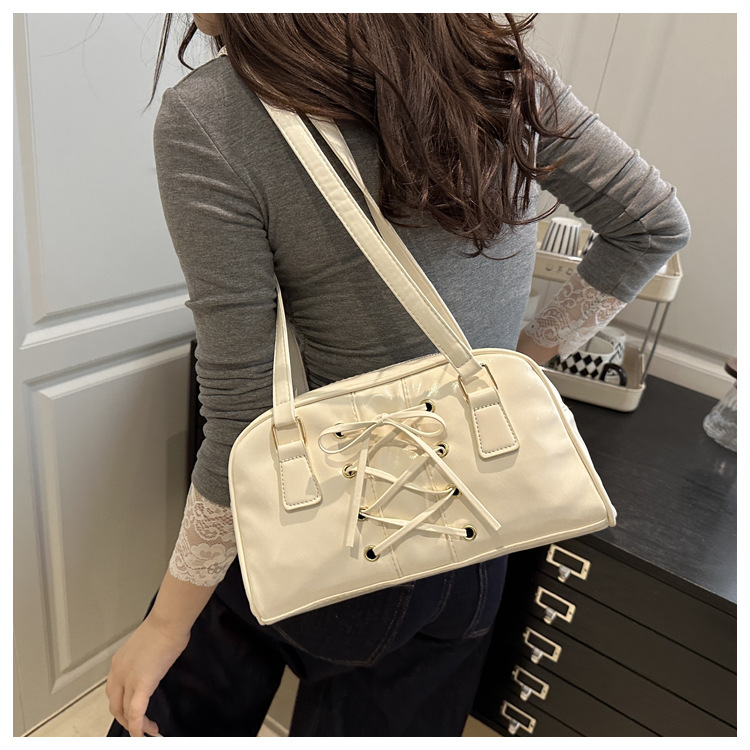 2025 휴대용 캐주얼 여행 솔리드 컬러 새로운 통근 대용량 보우 심플 겨드랑이 싱글 숄더 핸드백 여성용