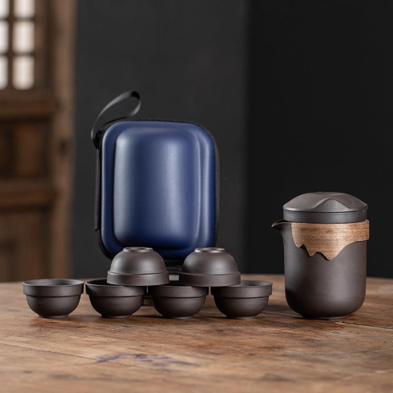 여행용 티 세트 퍼플 샌드 원 포트 6컵 세트