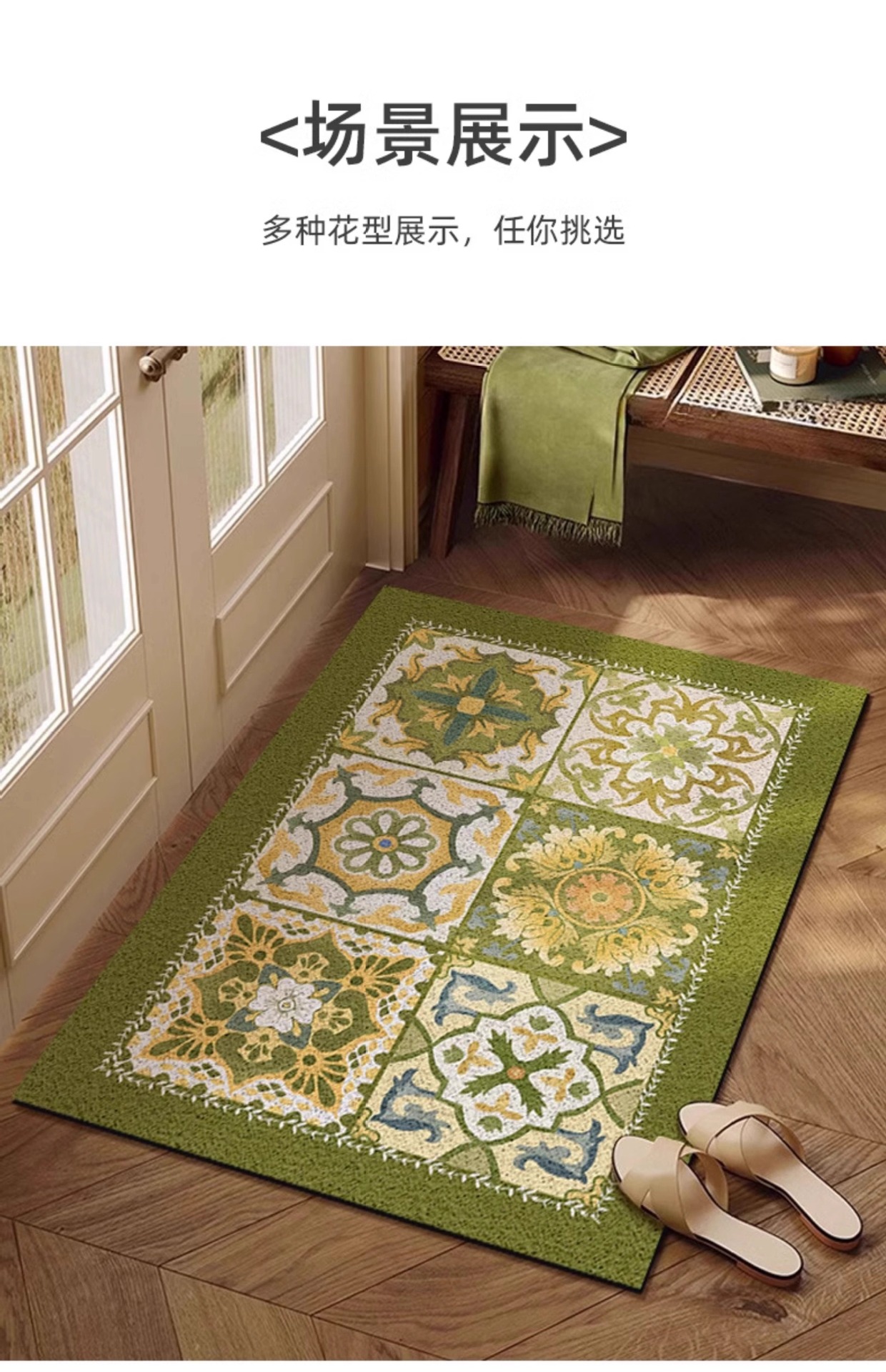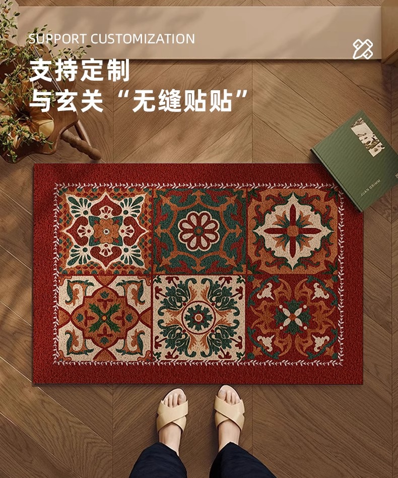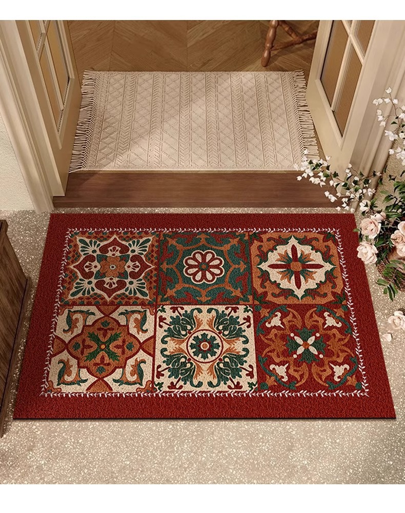 미국 복고풍 스타일의 현관문 미끄럼 방지 현관문 바닥 매트, 절단 가능한 와이어 링 바닥 매트스토어 가기