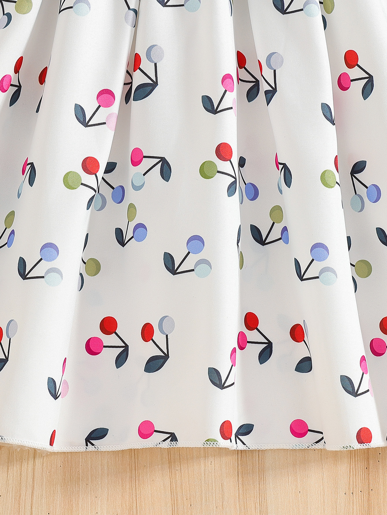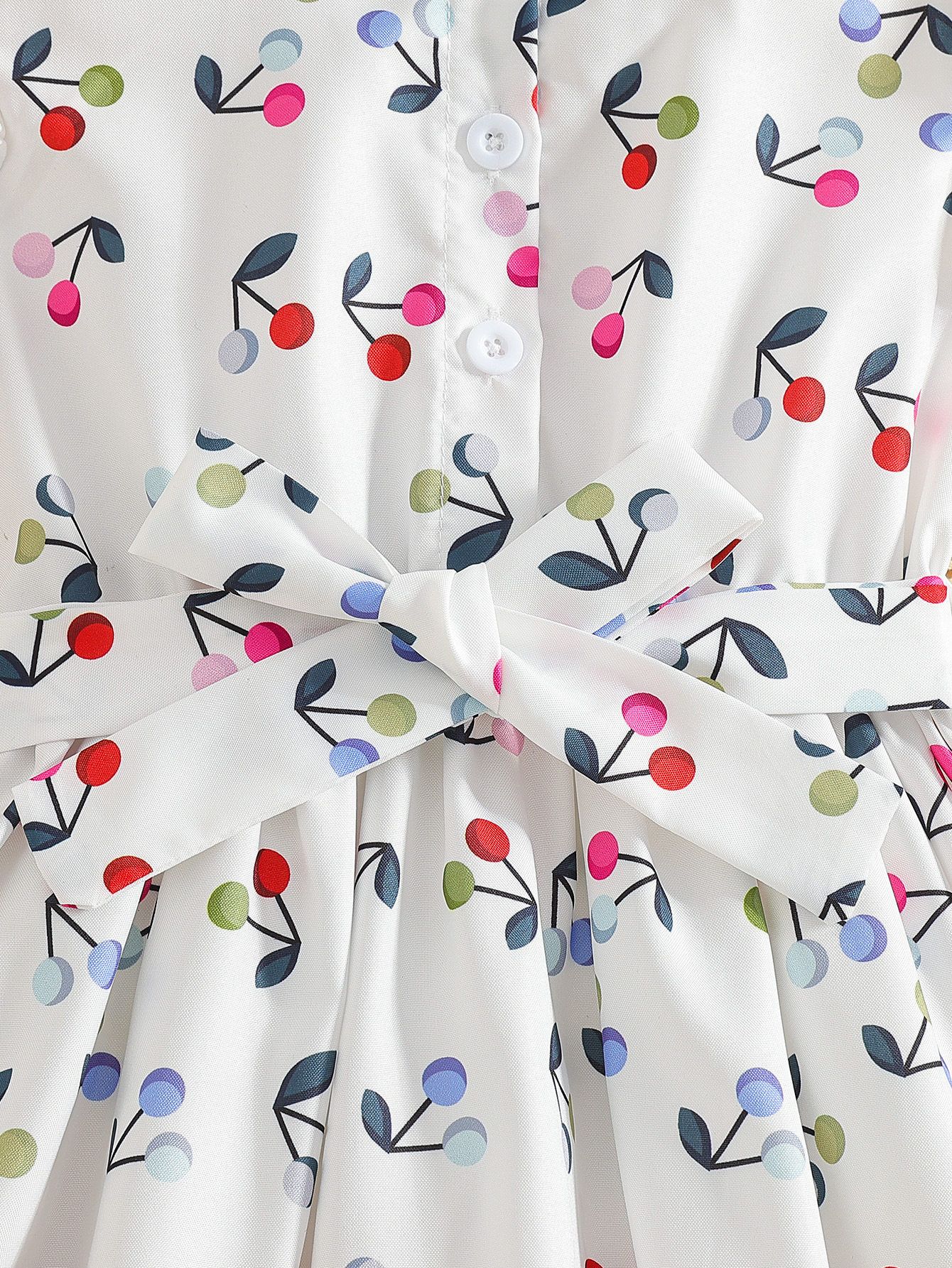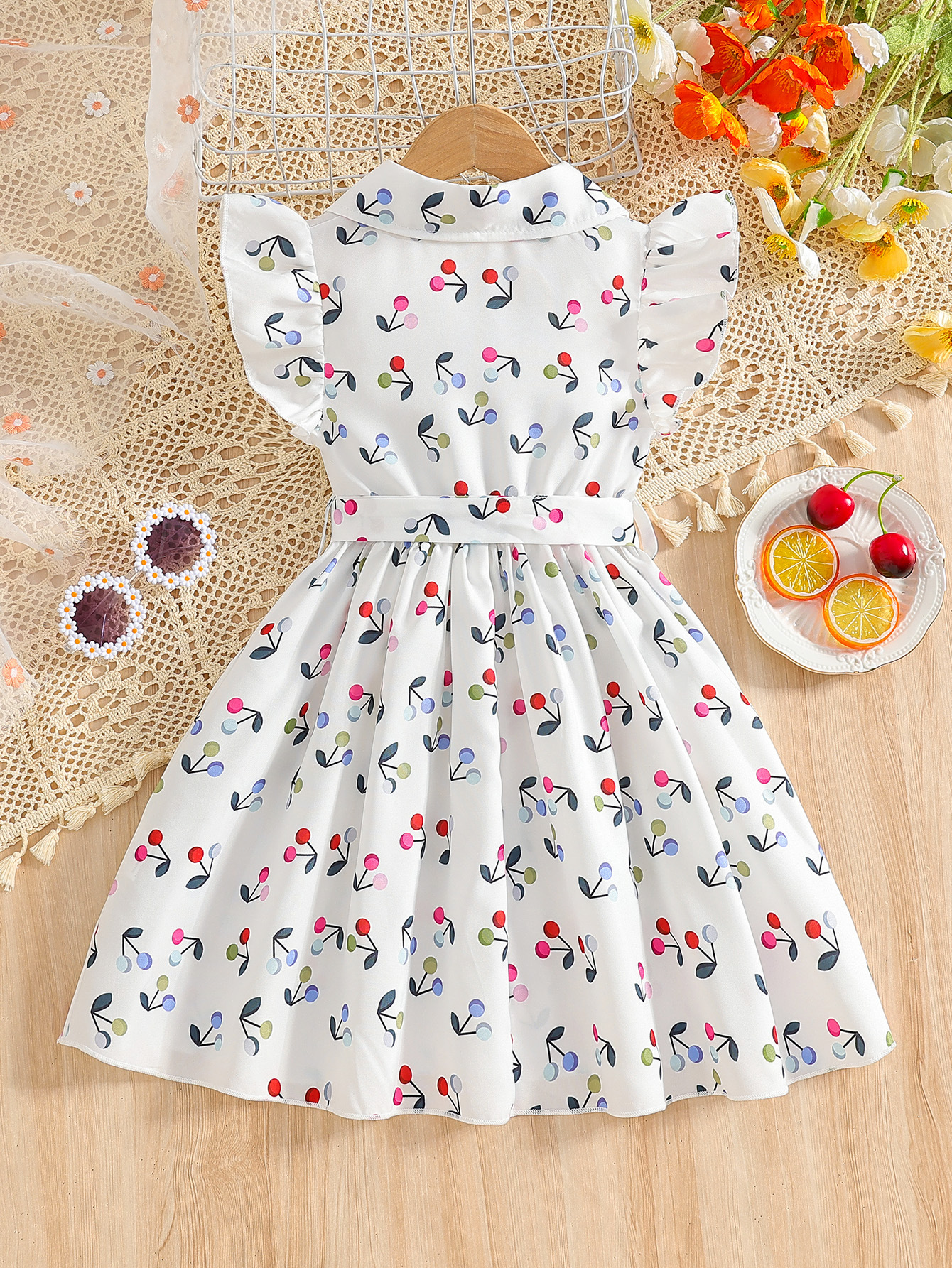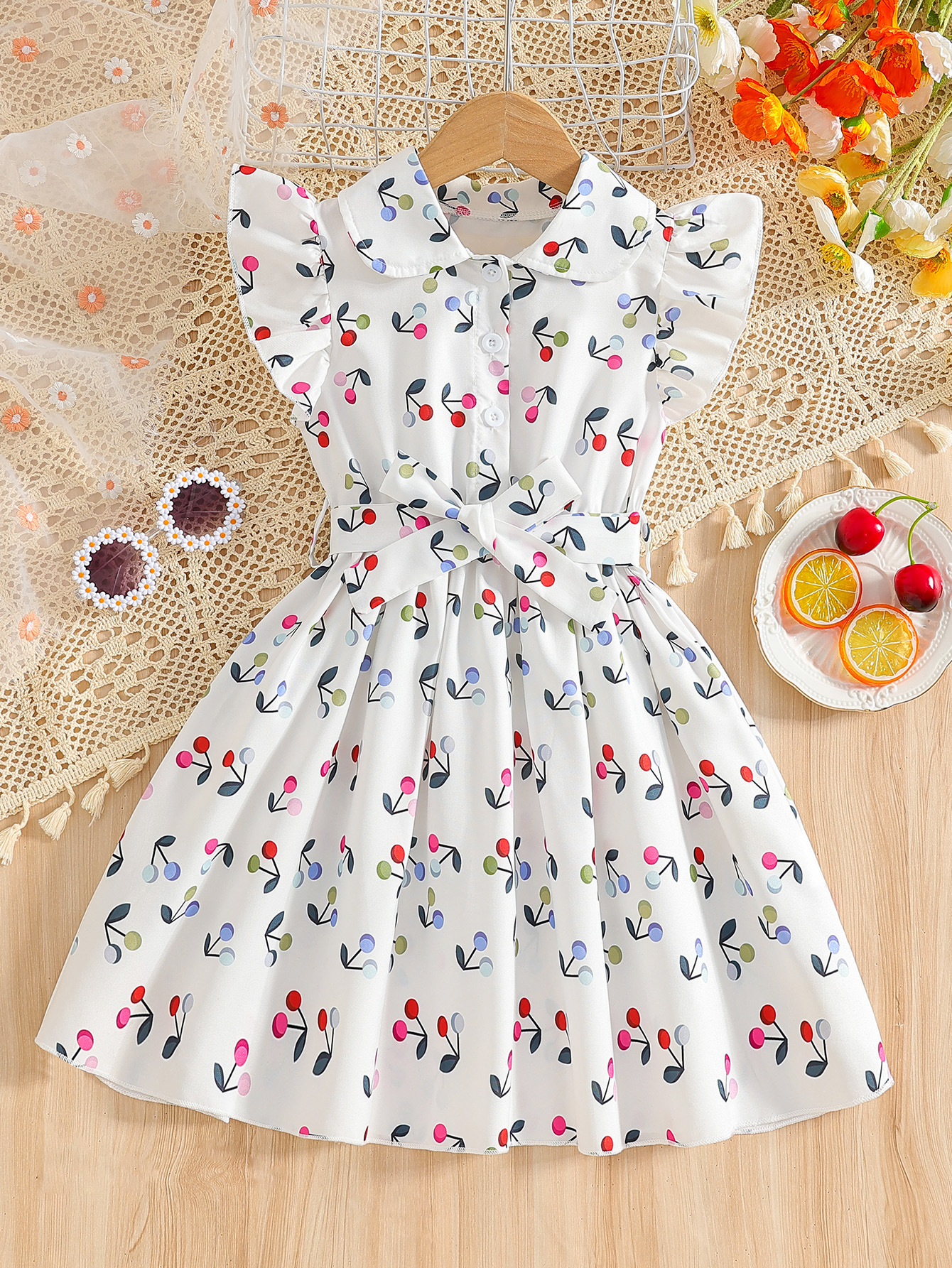 대외 무역 소녀 여름 드레스 흰색 플라잉 슬리브 인형 칼라 체리 프린트 보우 벨트 어린이 공주 드레스