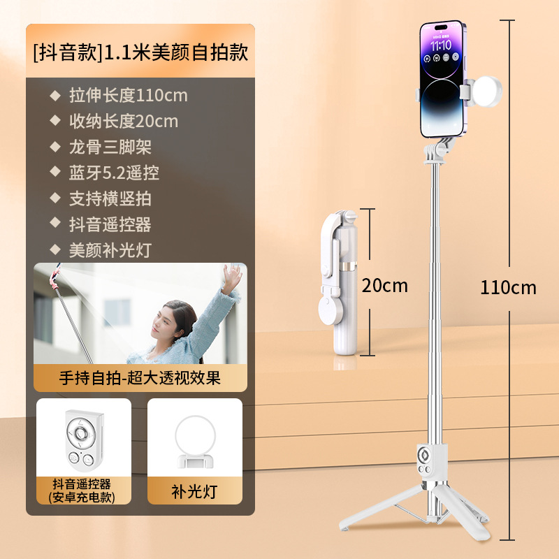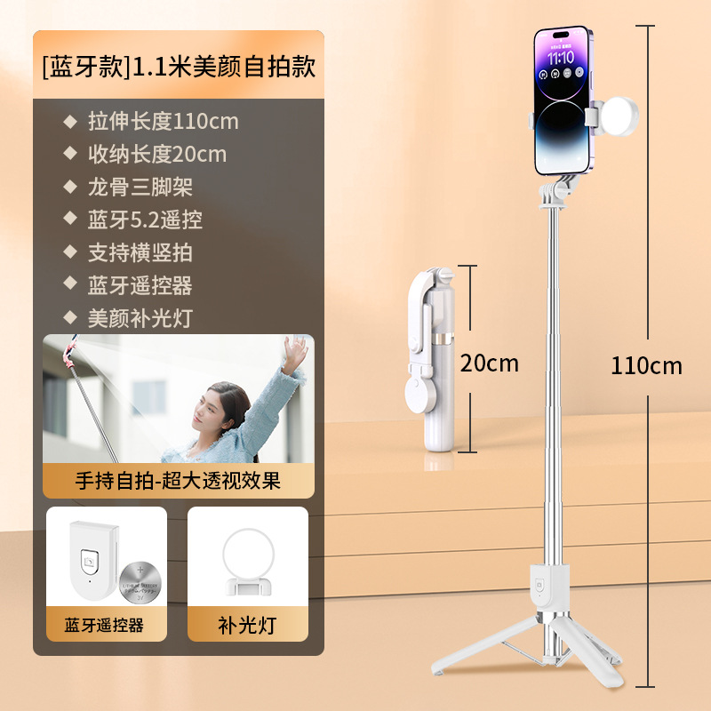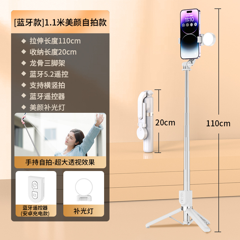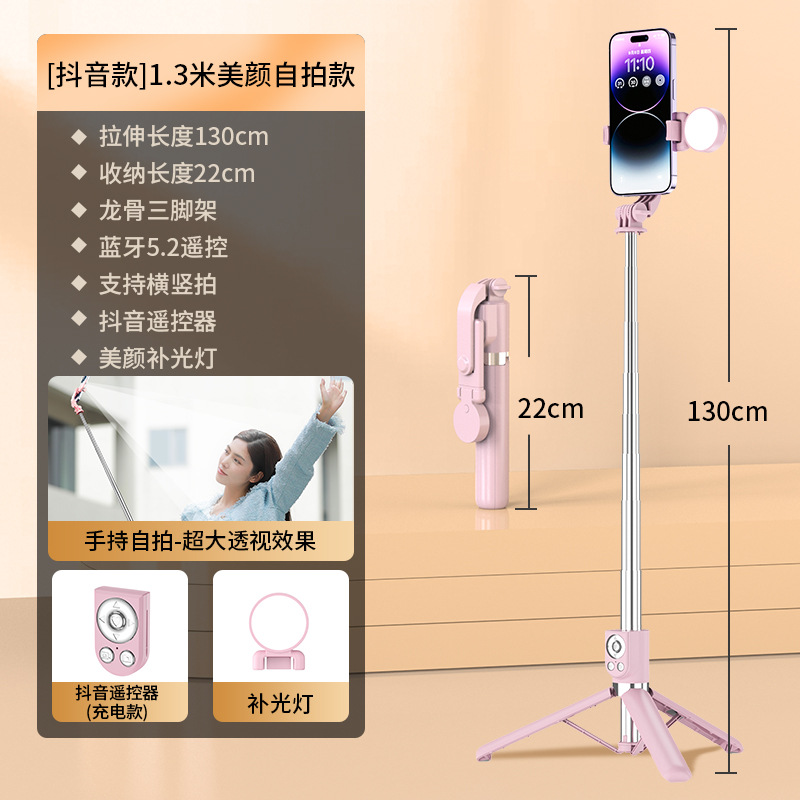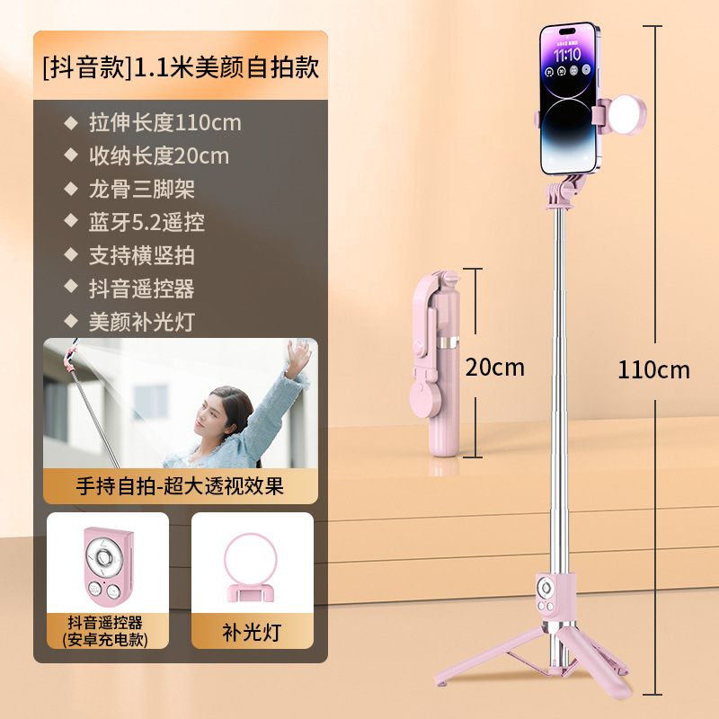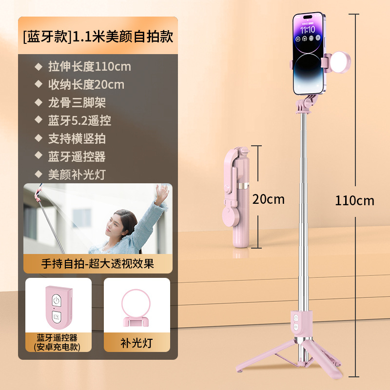 • R21 (핑크 + 7키 블루투스 + 듀얼 뷰티 소형 원형 조명) [단축 360도 삼각용골] 가성비 좋은 모델