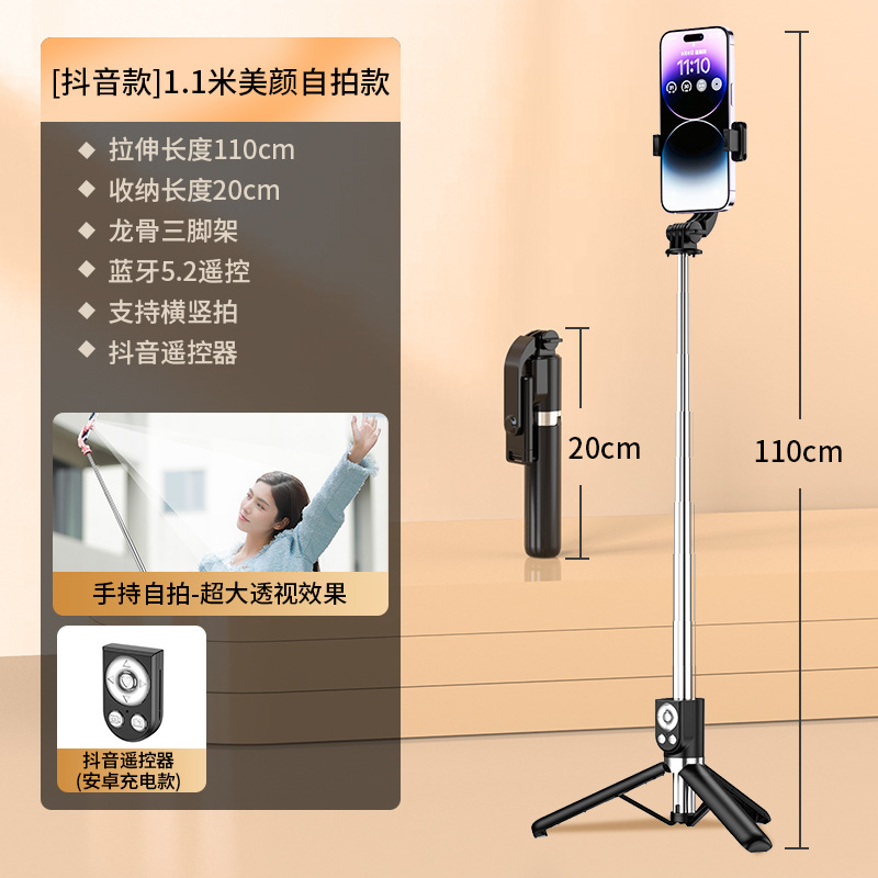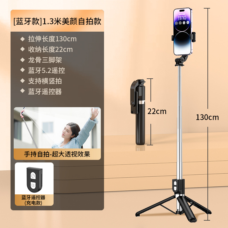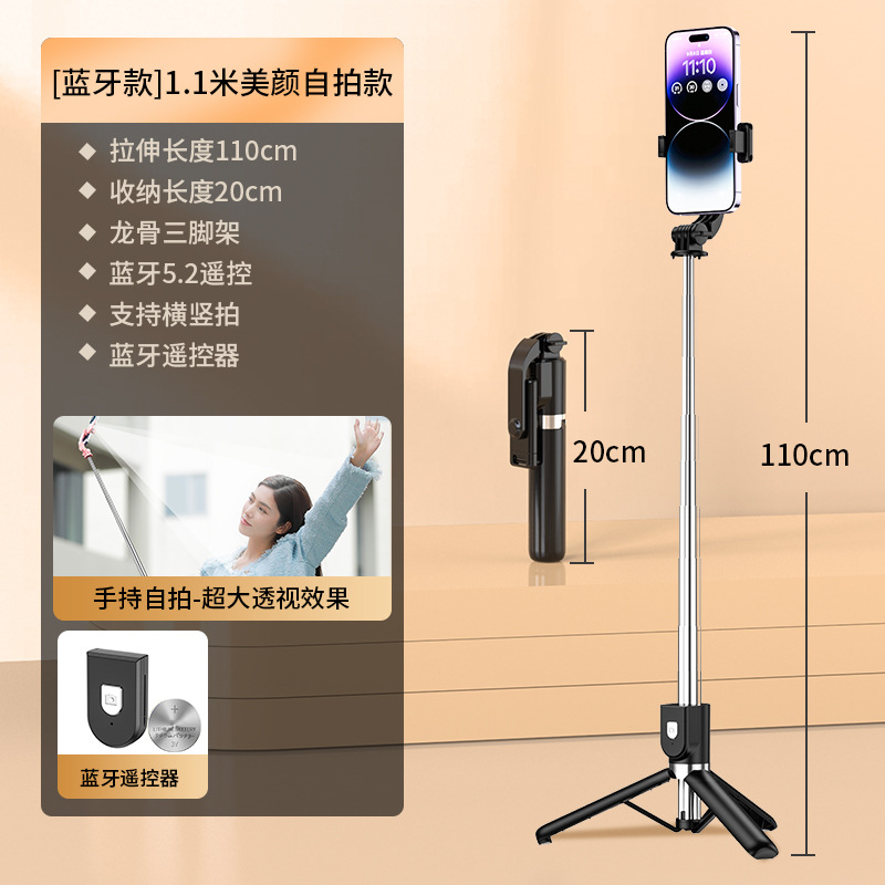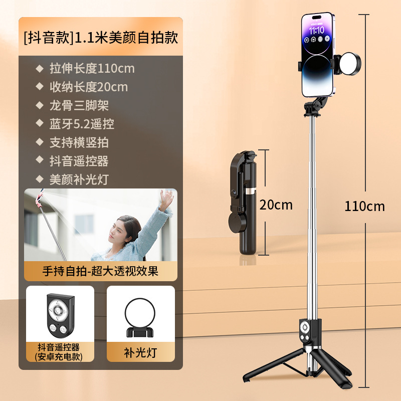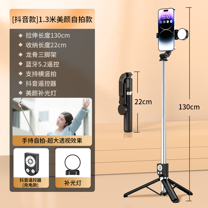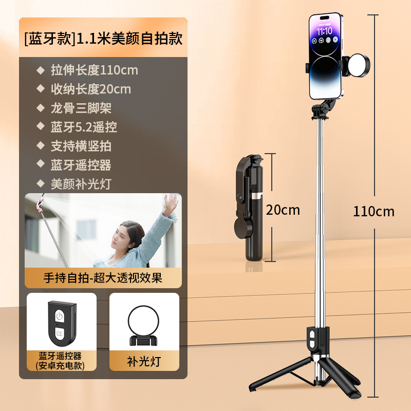 • R21 (블랙 + 7키 블루투스 + 듀얼 뷰티 소형 원형 조명) [단축 360도 삼각용골] 가성비 높은 모델
