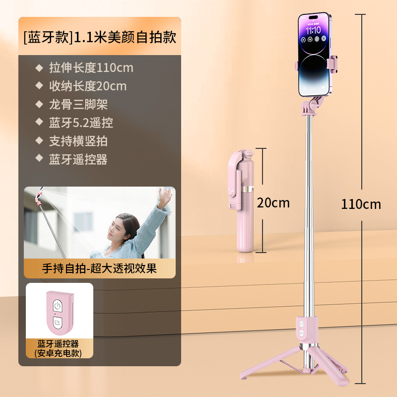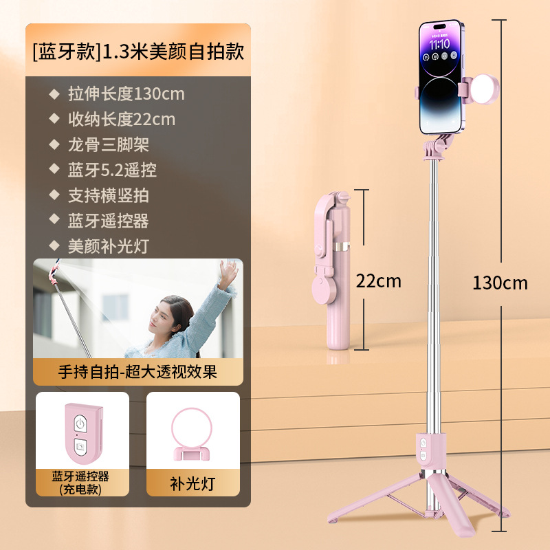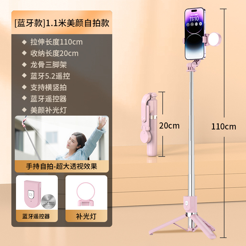 • R21 (핑크 + 1버튼 블루투스 + 듀얼 뷰티 소형 원형 조명) [단축 360도 삼각용골] 가성비 좋은 모델