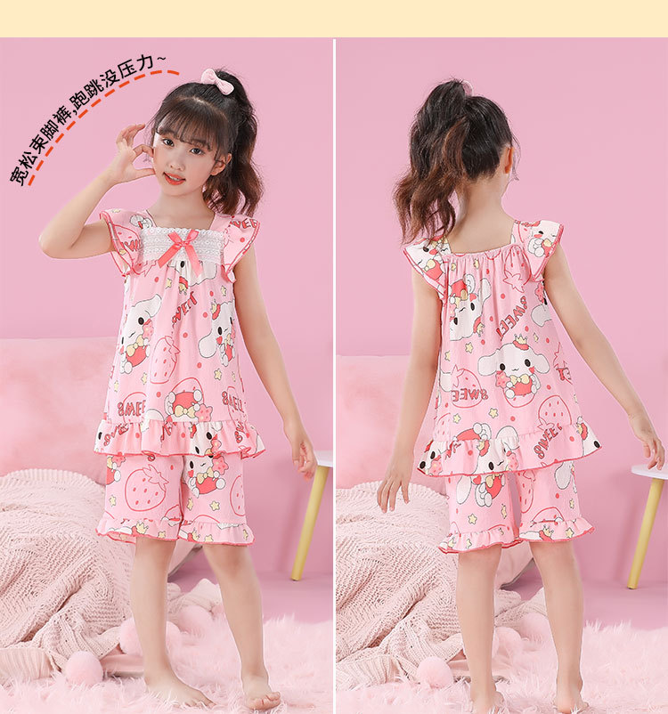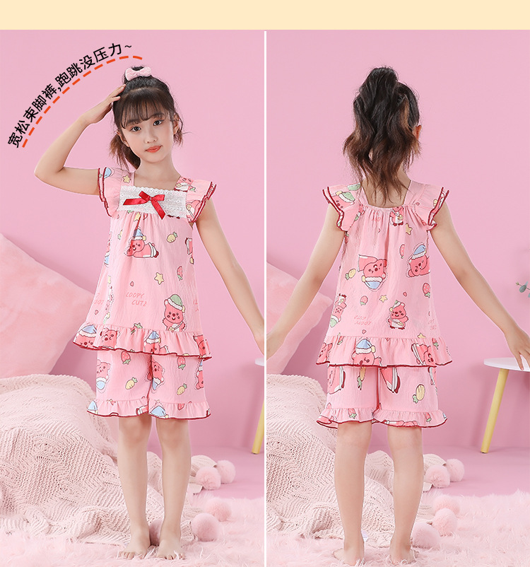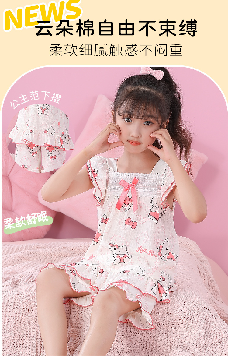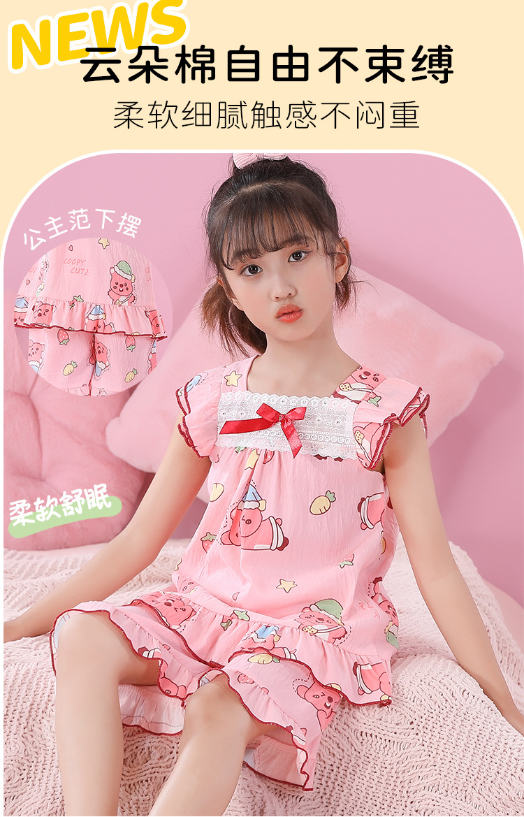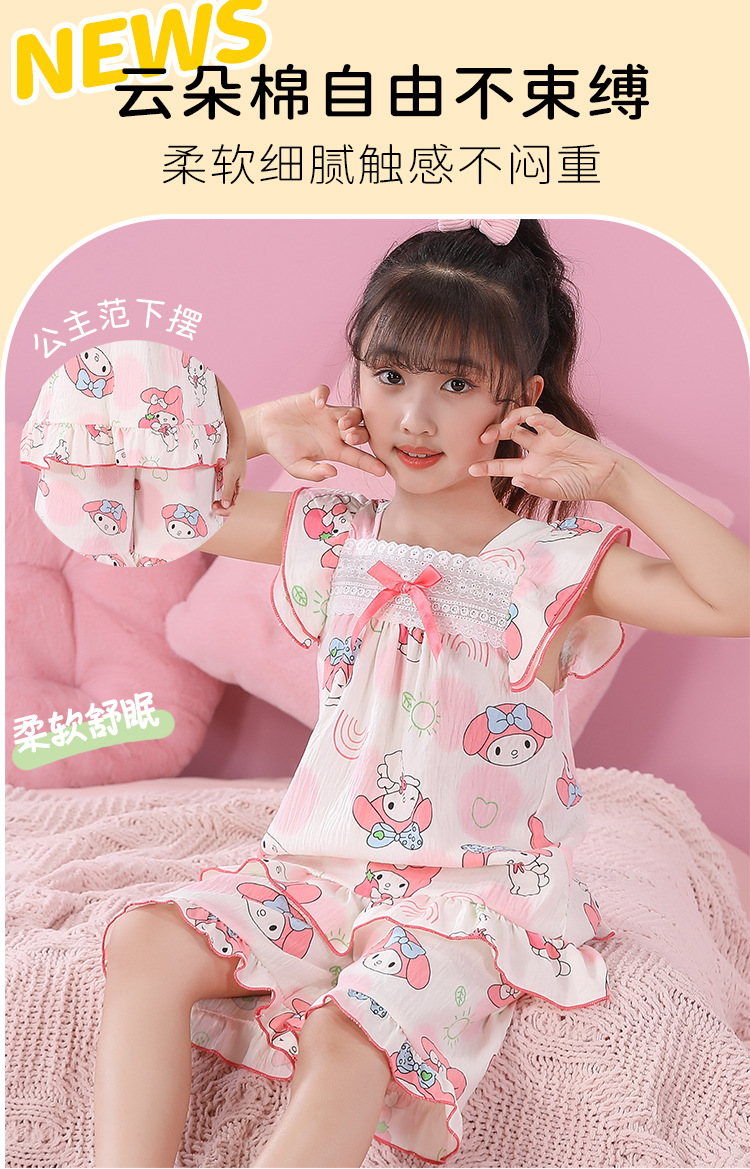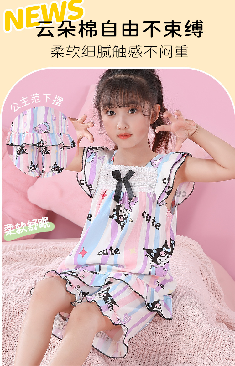 여성용 잠옷, 여름 소녀용 클라우드 면 반팔 반바지, 달콤한 만화 캐주얼 에어컨 의류, 중대형 아동복스토어 가기