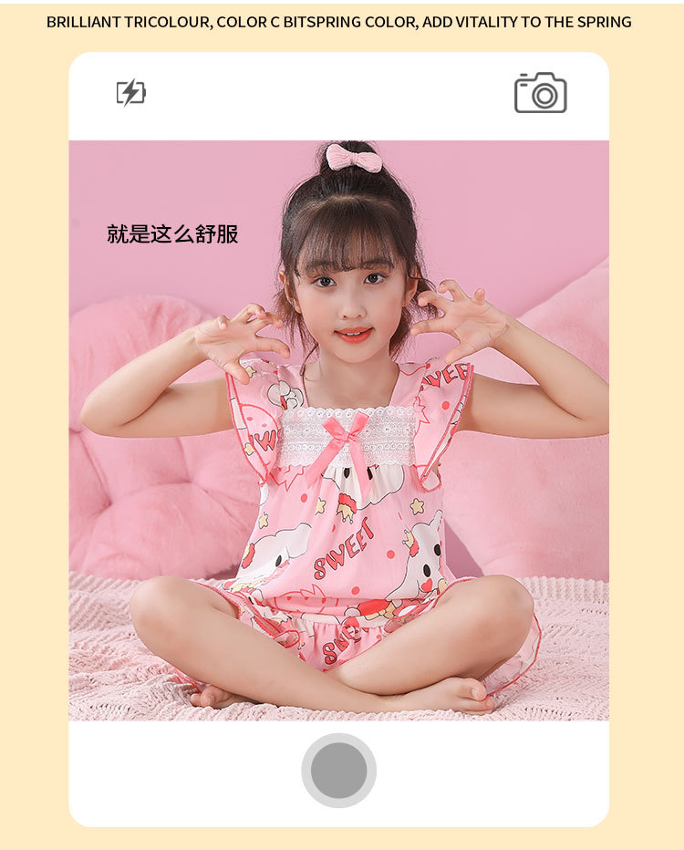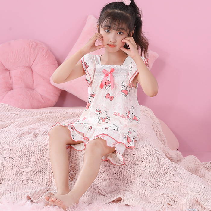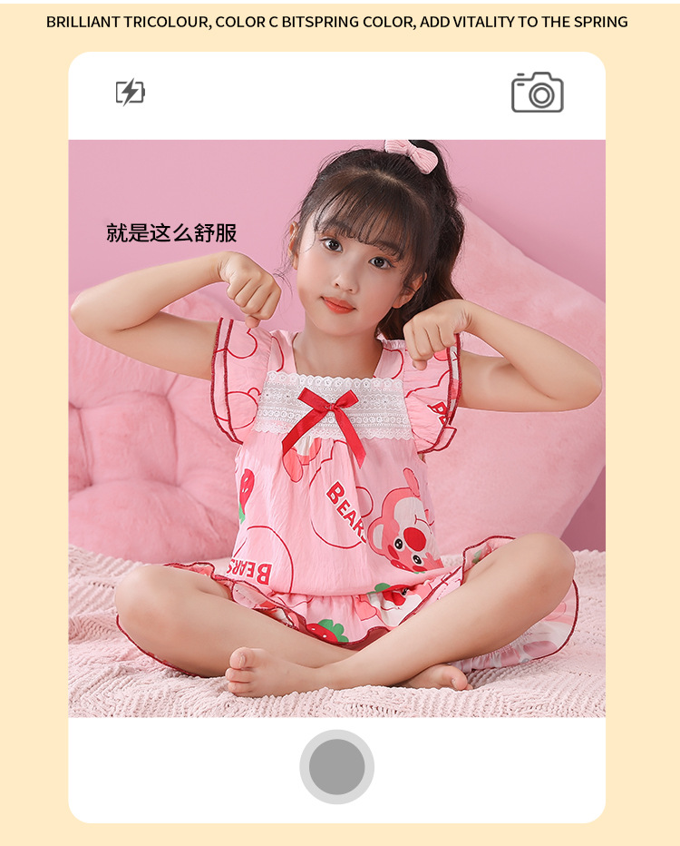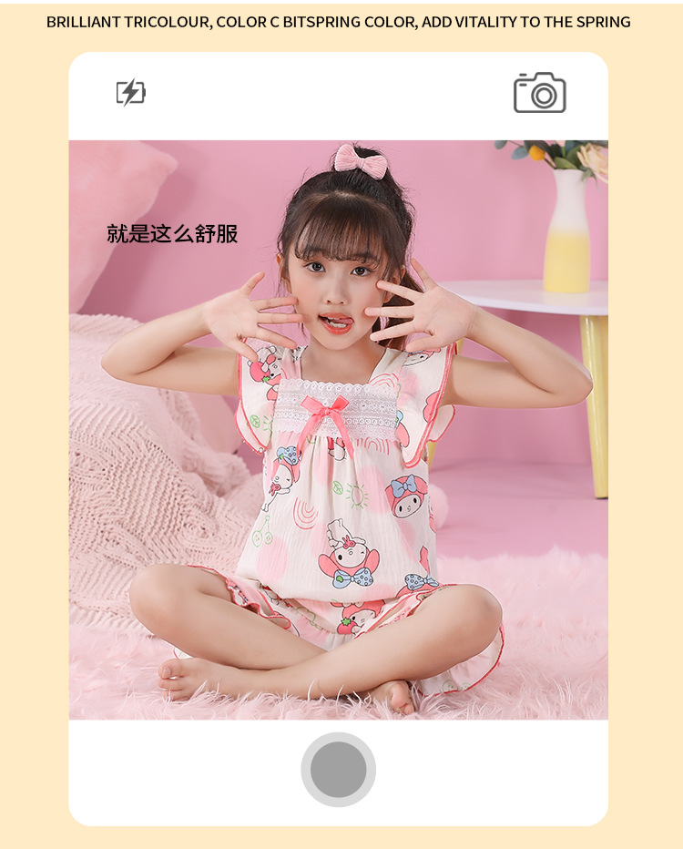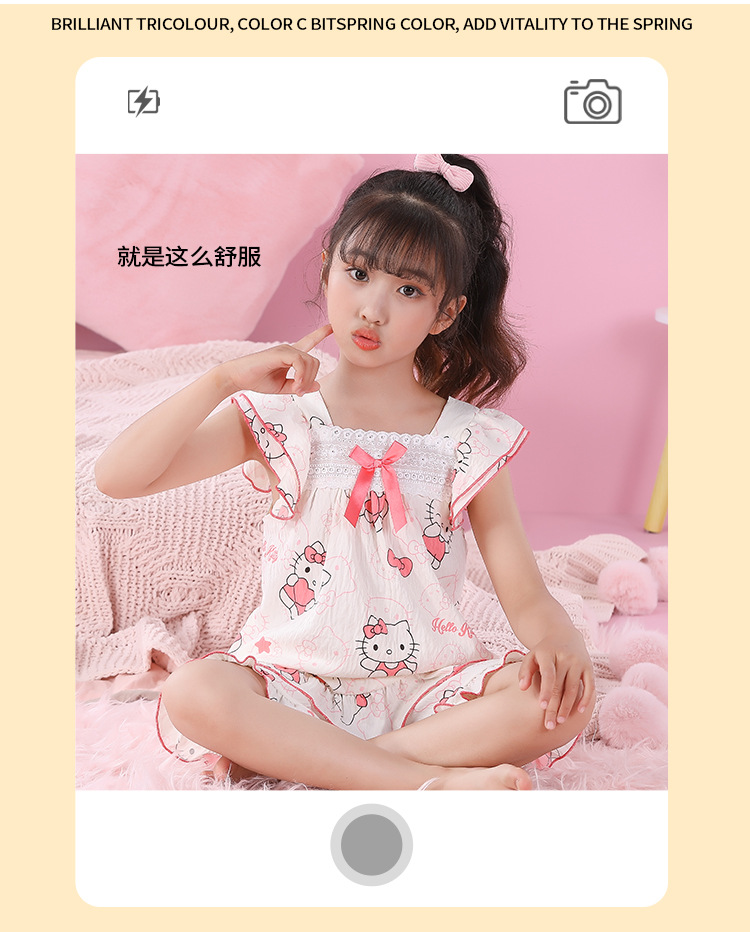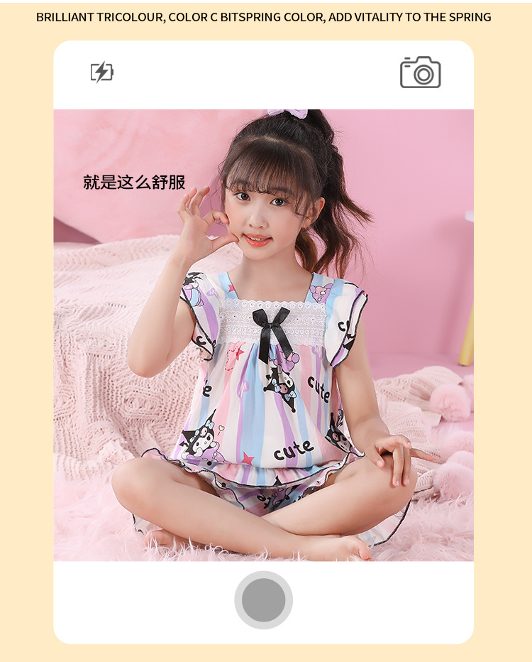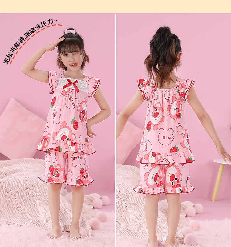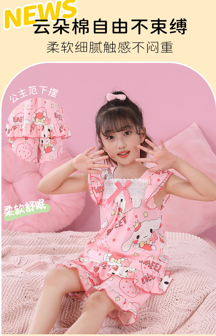 여성용 잠옷, 여름 소녀용 클라우드 면 반팔 반바지, 달콤한 만화 캐주얼 에어컨 의류, 중대형 아동복스토어 가기
