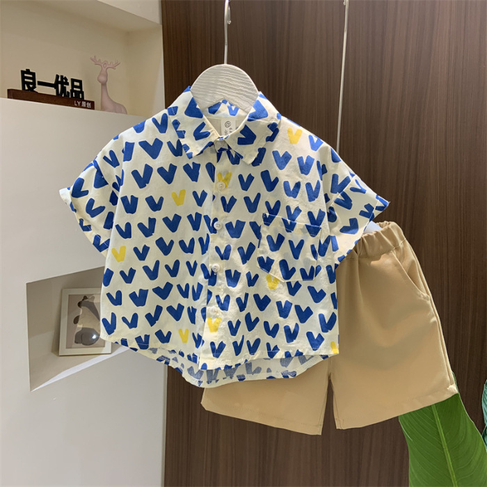 소년 다목적 러브 셔츠 여름 소년 반팔 어린이 잘 생긴 한국 스타일 유행 아기 티셔츠스토어 가기