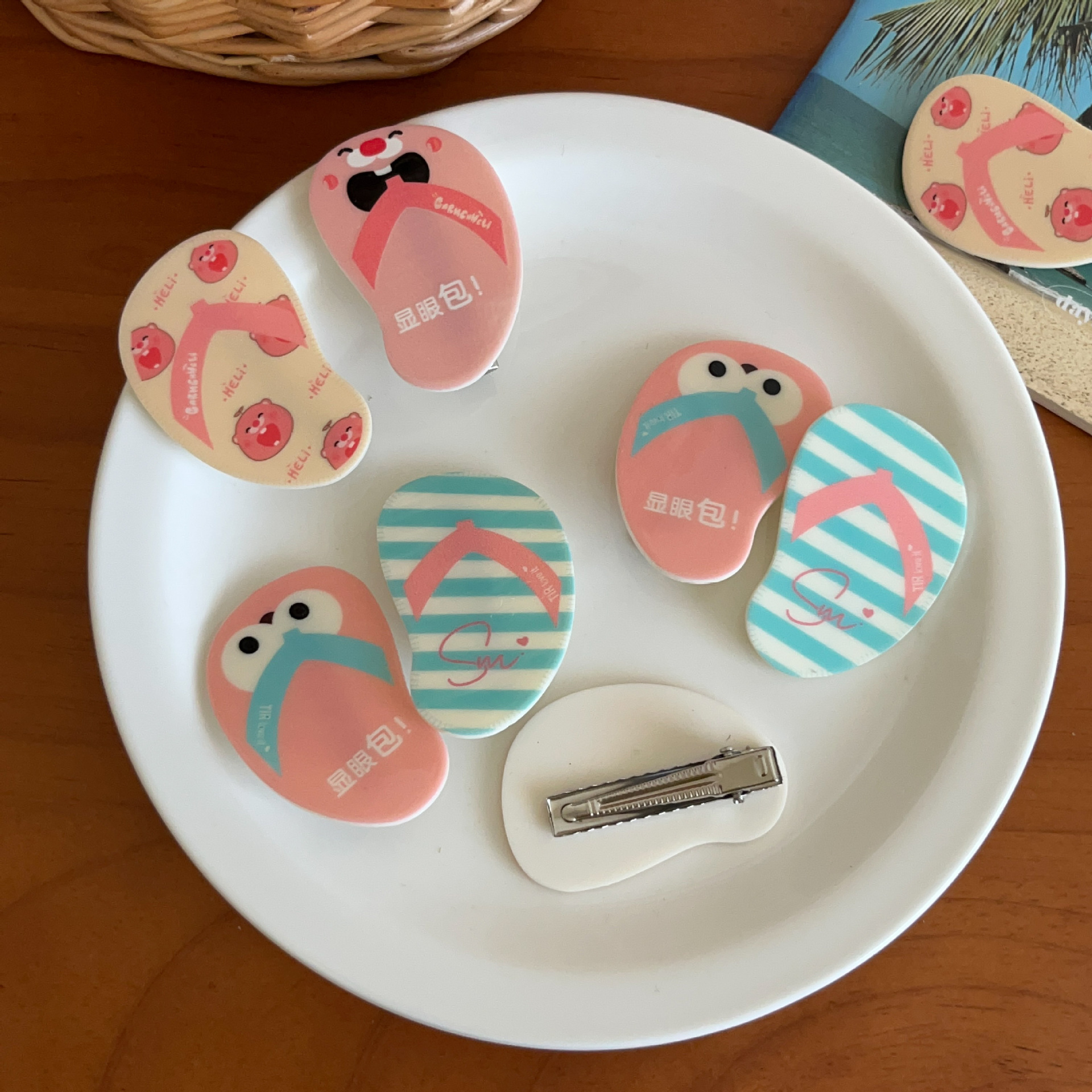 귀엽고 재미있는 슬리퍼 머리핀 만화 소녀 하트 사이드 머리핀 봄과 여름 여성을위한 다용도 달콤한 학생 머리핀