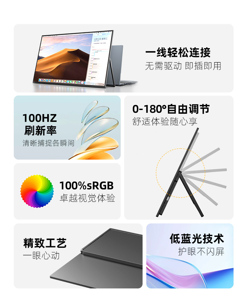EIMIO23.8인치 4K180HZ 무선 프로젝션 터치 휴대용 디스플레이 오피스 엔터테인먼트 컴퓨터 확장 화면스토어 가기