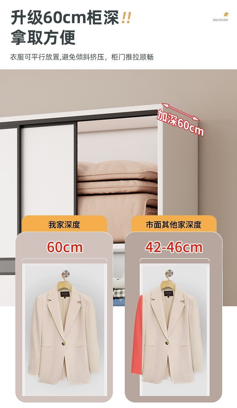 모든 단단한 나무 옷장 홈 침실 60 깊은 어린이 임대 방 슬라이딩 도어 옷장 간단한 보관 캐비닛스토어 가기