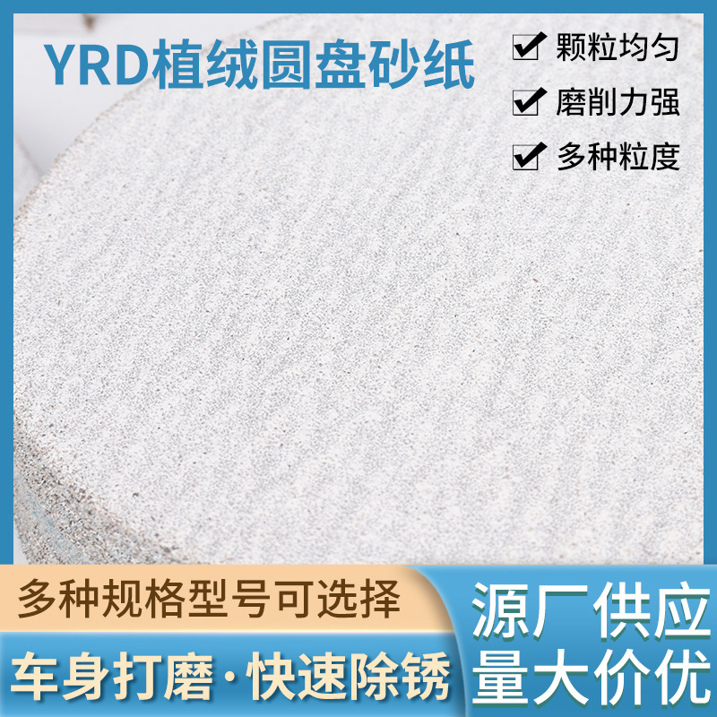 YRD 플로킹 디스크 사포 7 인치 180mm 180 메쉬 220 메쉬 플로킹 건식 연삭 디스크 사포 산업용 연삭 흰색 사포스토어 가기