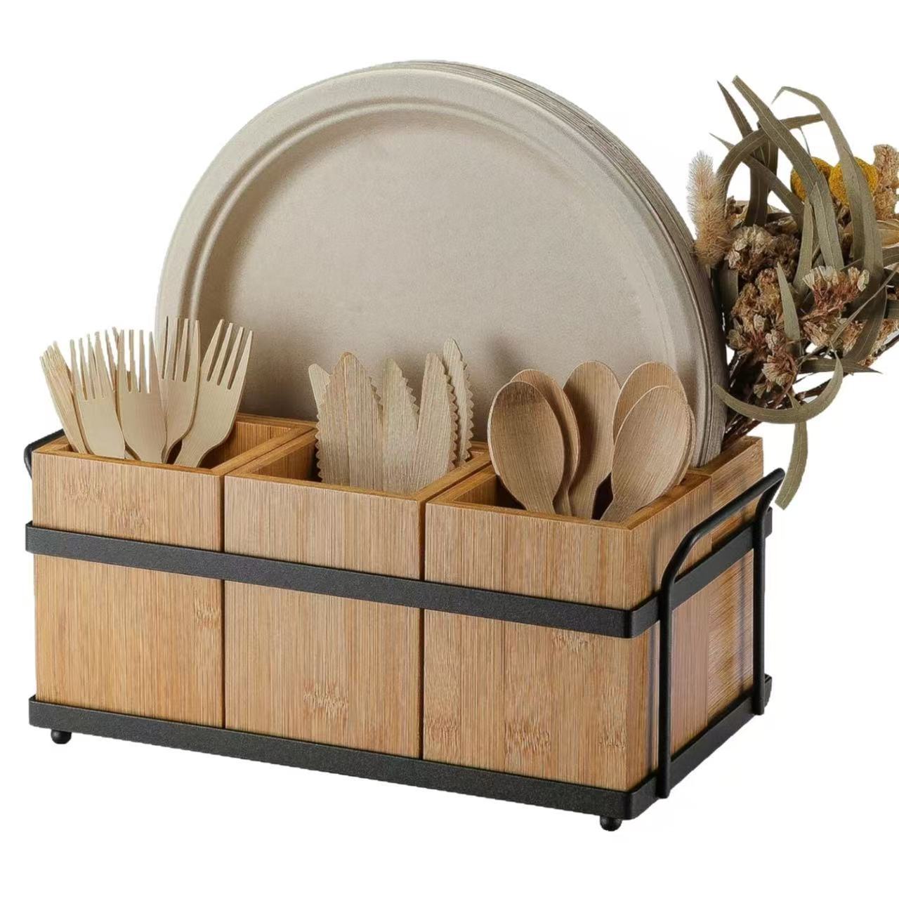 나무 주방 식기 보관함, 분리형 식탁, 칼과 포크, 은식기 보관함, 종이 타월 디스펜서, 다중 그리드 칼 홀더
