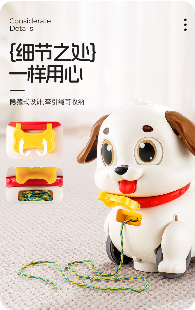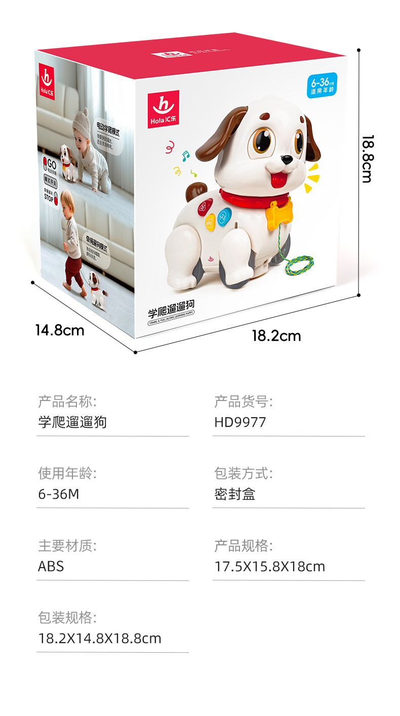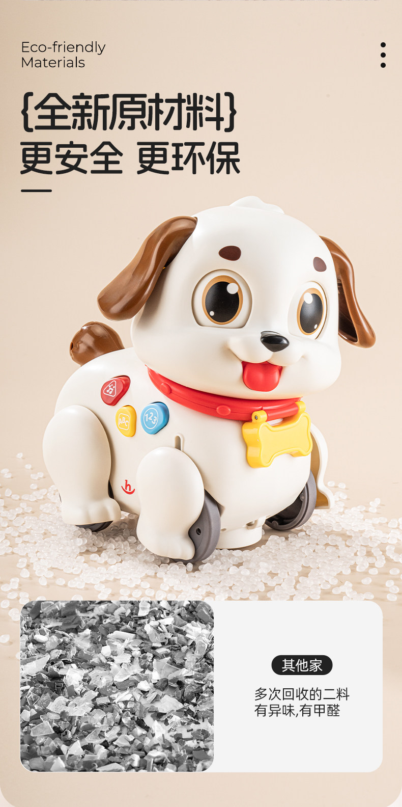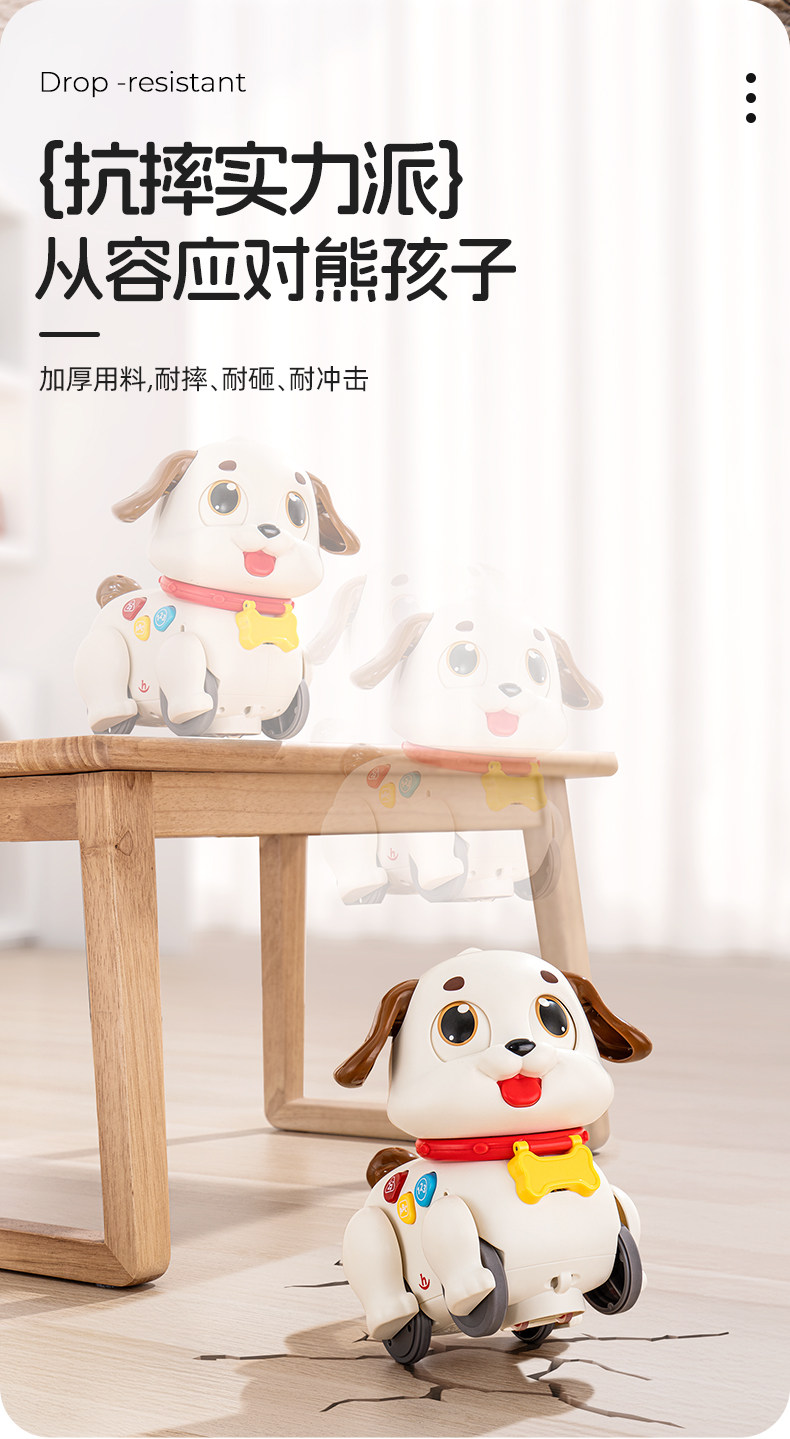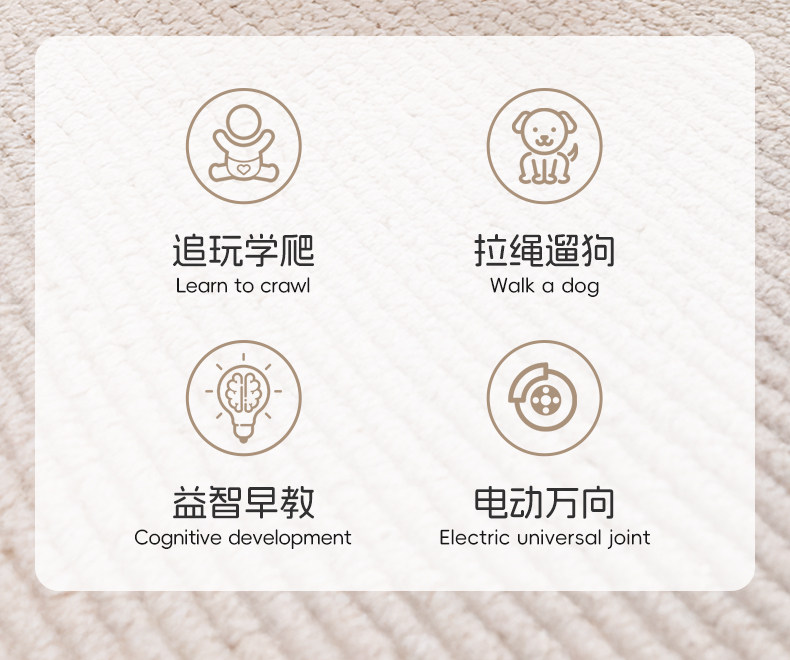 Huile는 6개월 된 아기가 머리를 들어 올리고 기어가는 법을 연습할 수 있도록 전기 로봇 개를 가르칩니다.스토어 가기