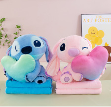 새로운 만화 스티치 에어컨 담요 귀여운 허깅 오리 스티치 인형 봉제 인형 어린이 장난감 베개