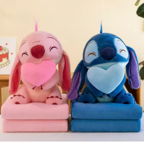 새로운 만화 스티치 에어컨 담요 귀여운 허깅 오리 스티치 인형 봉제 인형 어린이 장난감 베개스토어 가기