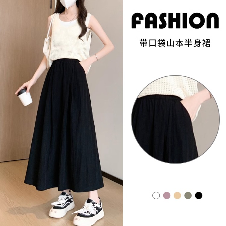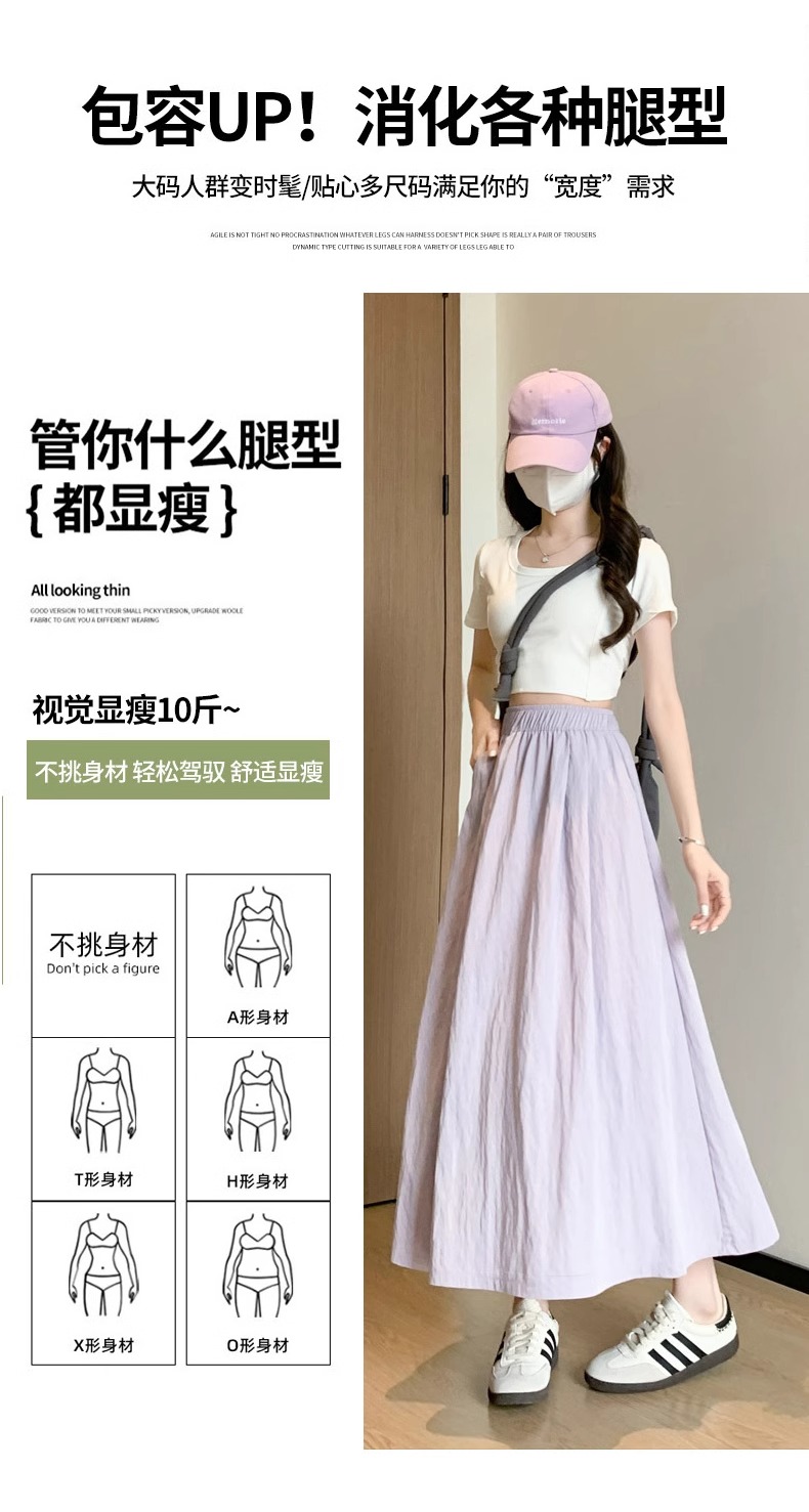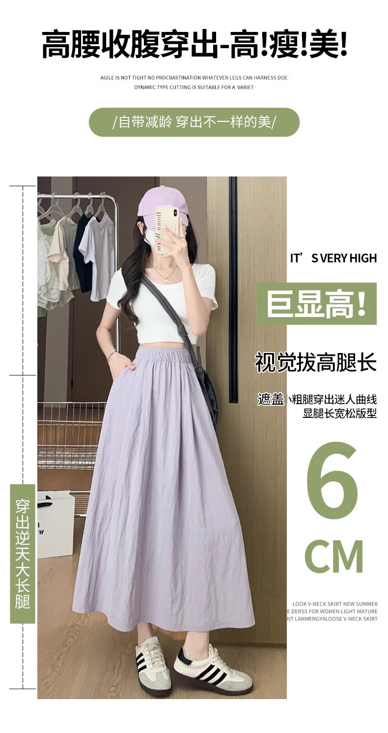 플러스 사이즈 뚱뚱한 여성용 마츠모토 스커트 여름 신작 하이 웨이스트 슬리밍 a 라인 스커트 아이스 실크 대형 스윙 우산 스커트스토어 가기