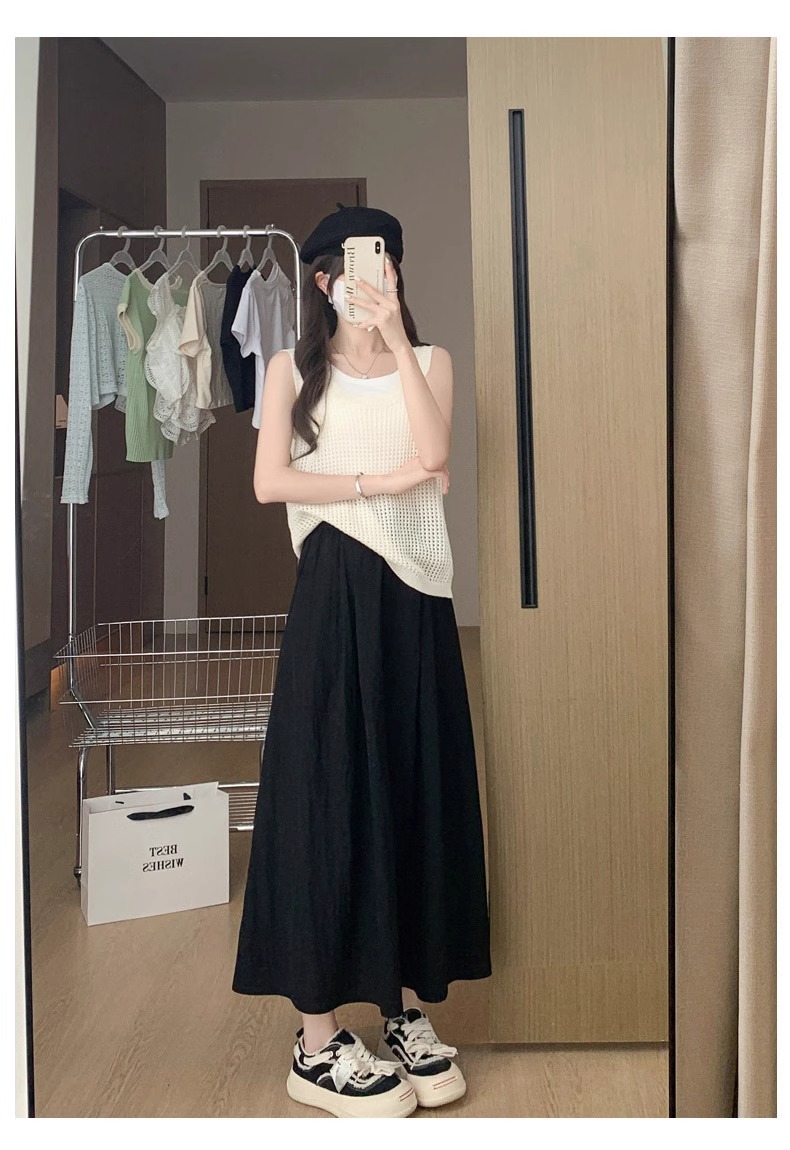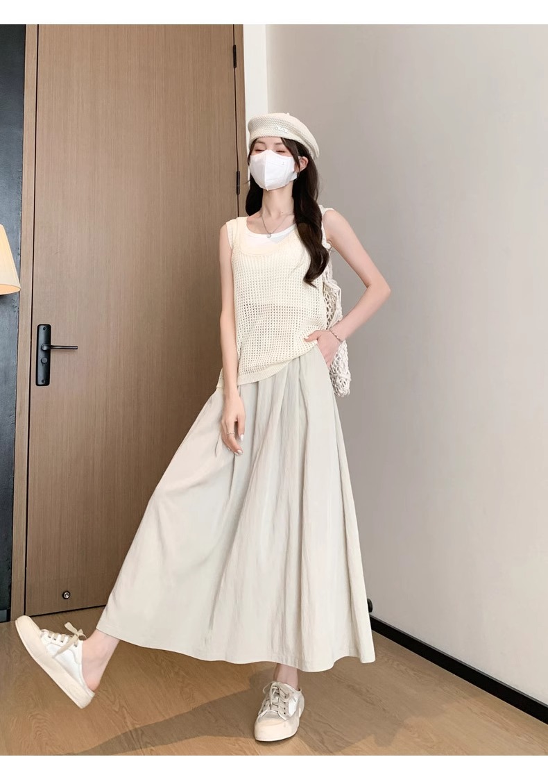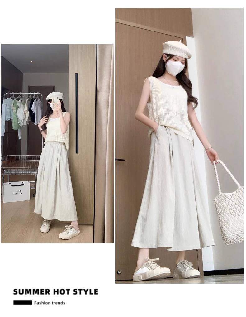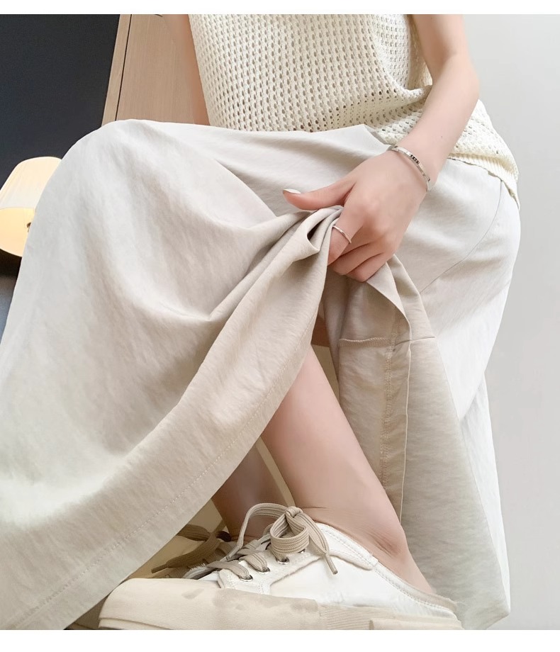 플러스 사이즈 뚱뚱한 여성용 마츠모토 스커트 여름 신작 하이 웨이스트 슬리밍 a 라인 스커트 아이스 실크 대형 스윙 우산 스커트스토어 가기