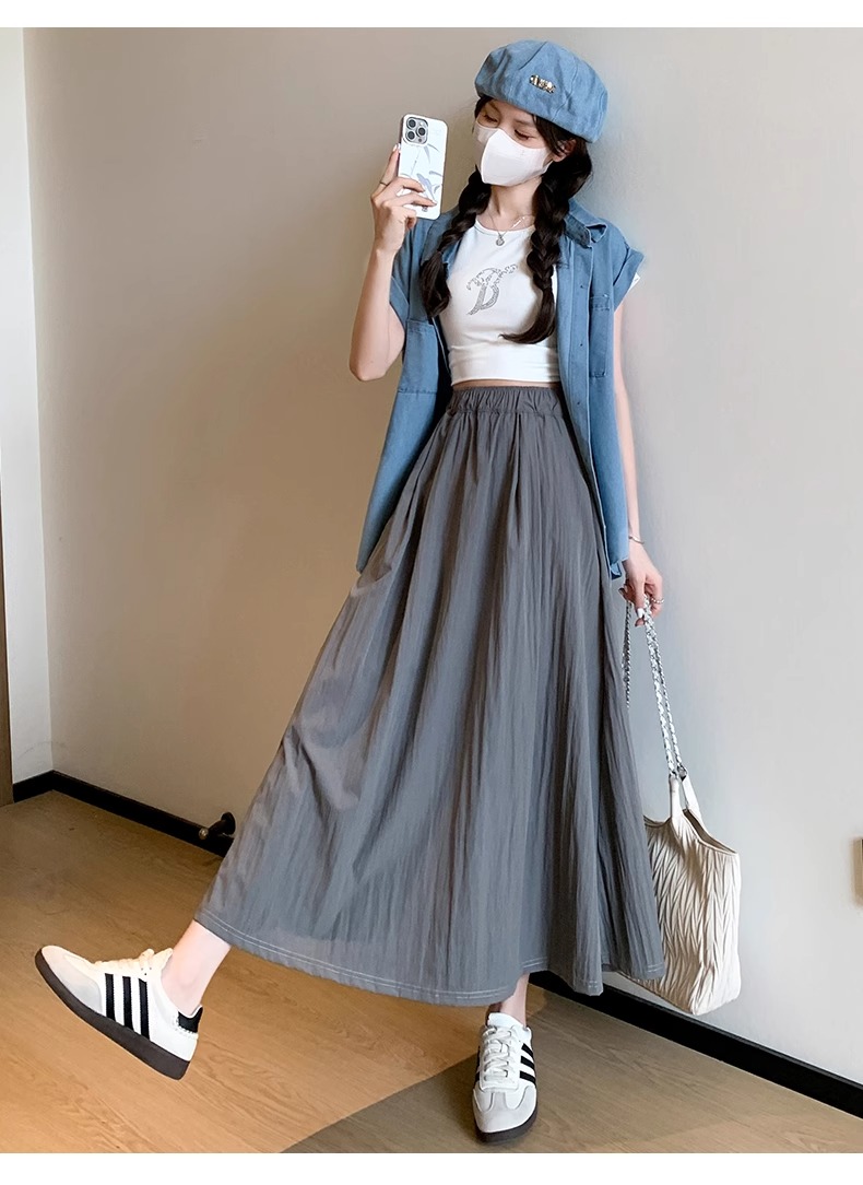 플러스 사이즈 뚱뚱한 여성용 마츠모토 스커트 여름 신작 하이 웨이스트 슬리밍 a 라인 스커트 아이스 실크 대형 스윙 우산 스커트