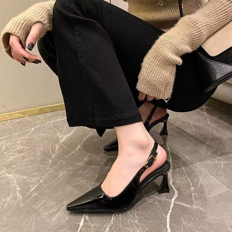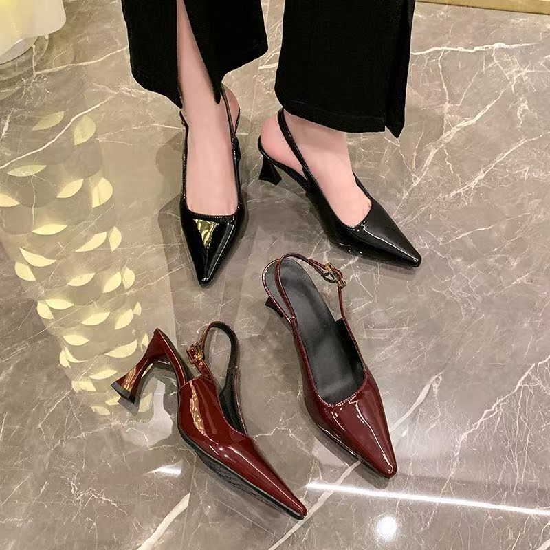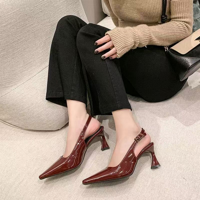 여성스러운 얇은 굽과 힐이 달린 버클 버클 버건디 하이힐, 여성을 위한 힐이 지루하지 않은 샌들, 2025 봄 신상 스타일스토어 가기
