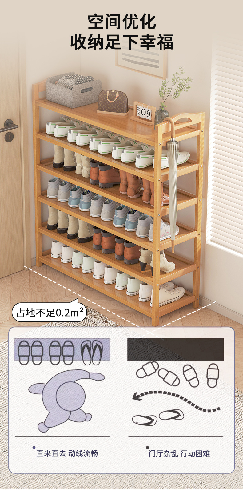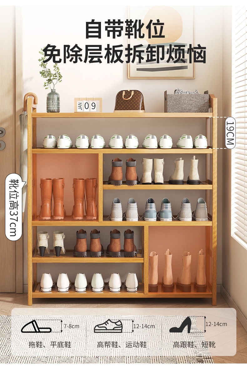 신발장, 간단하고 경제적인 가정용 다층 신발장, 가정용 원목 수납선반, 공간절약형 출입구 수납선반