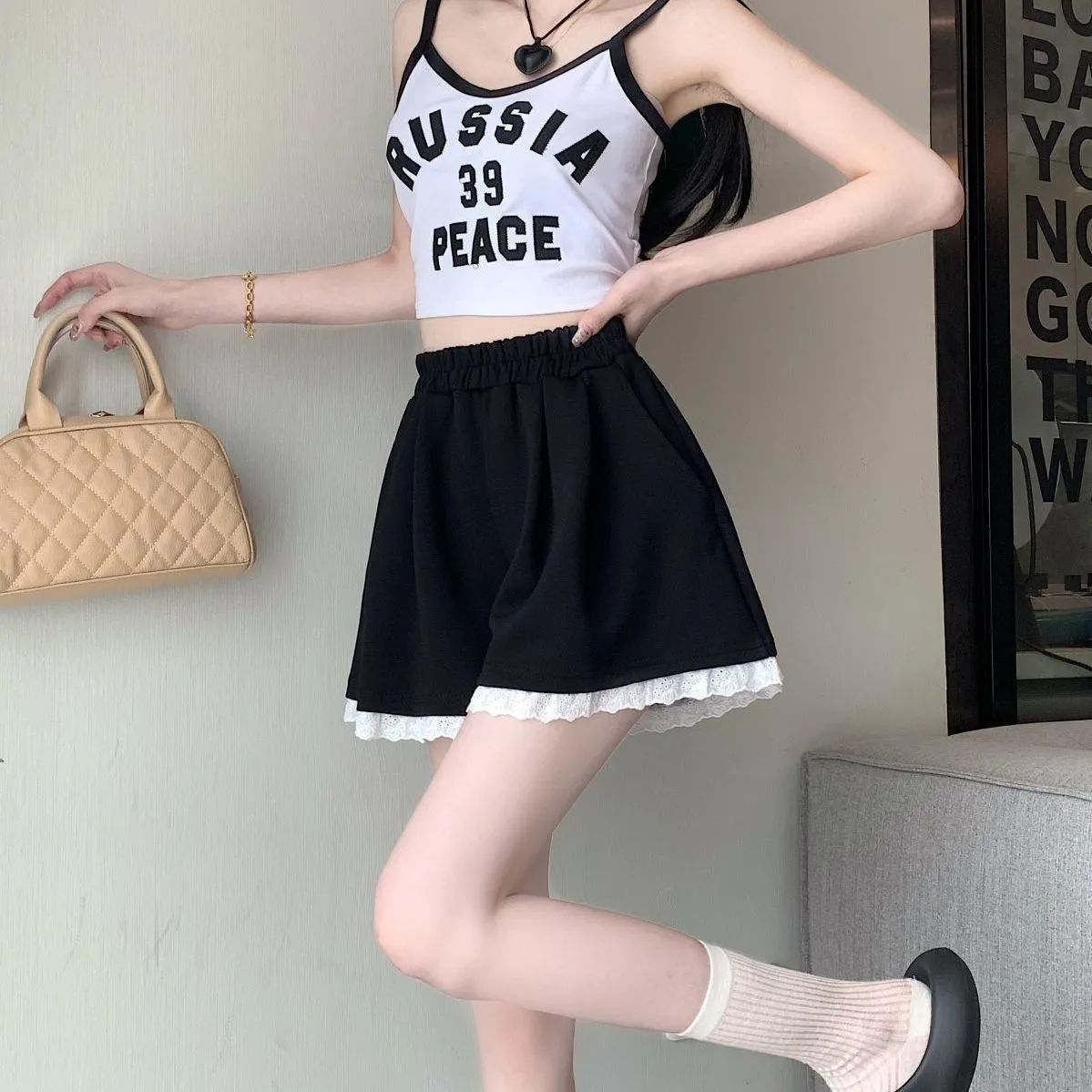아동복 여아 레이스 팬츠 중대형 아동 여름복 심플 스포츠 반바지 한국판 여아 캐주얼 만능 팬츠스토어 가기
