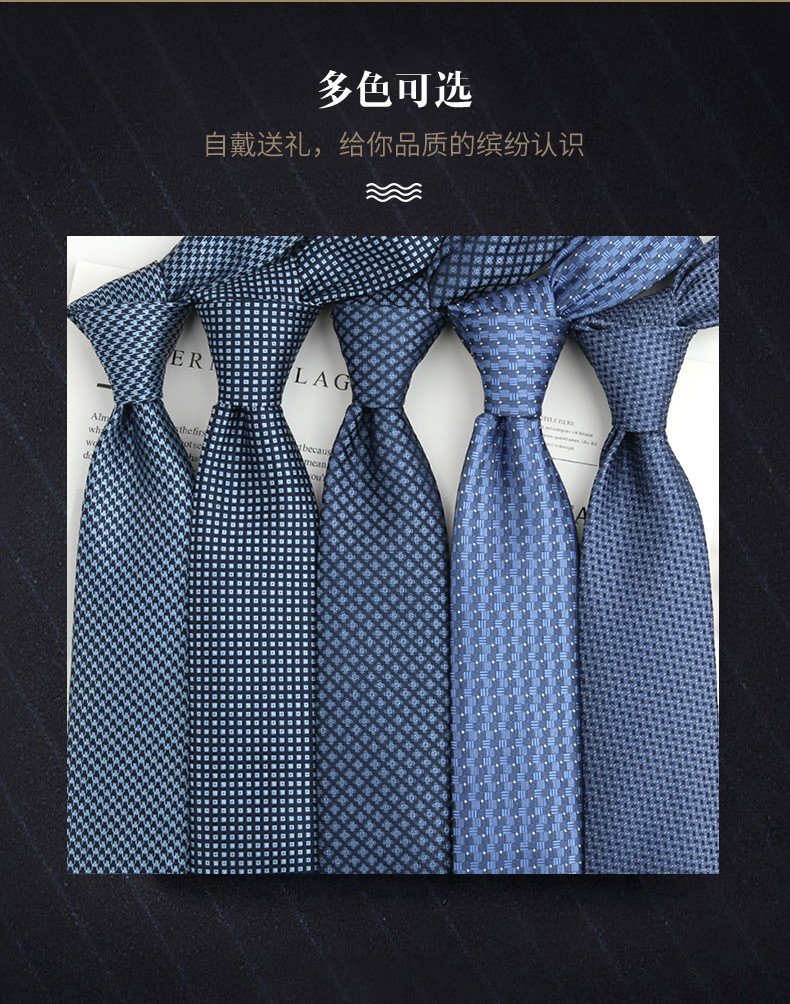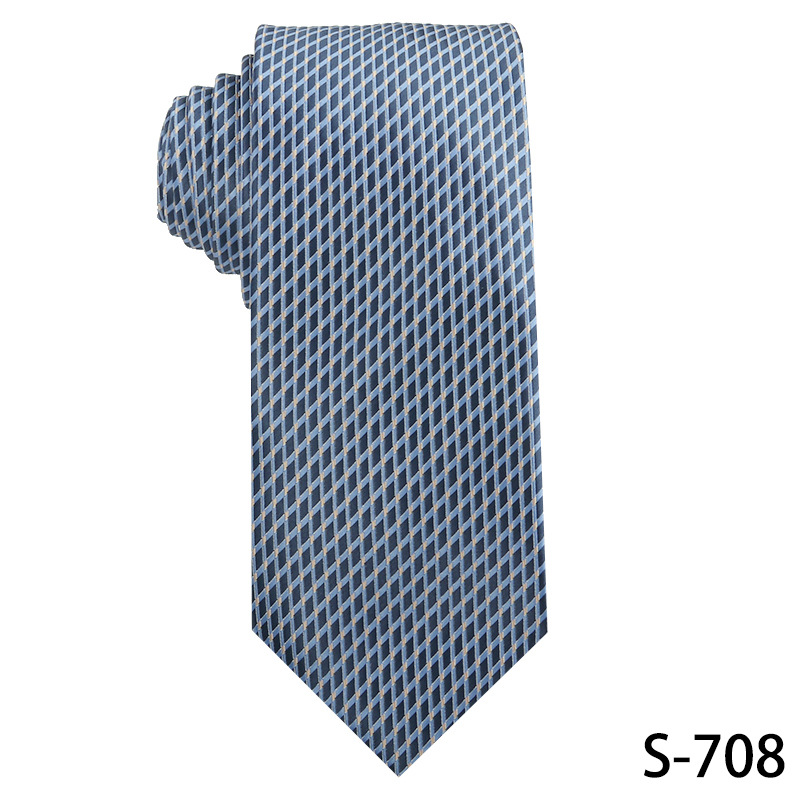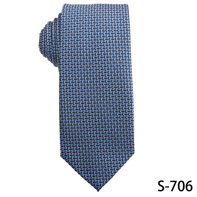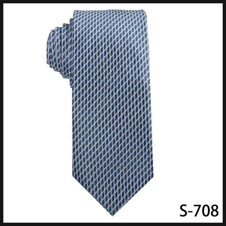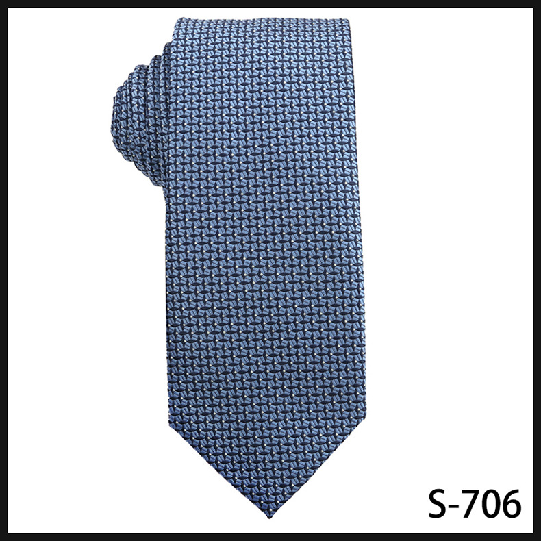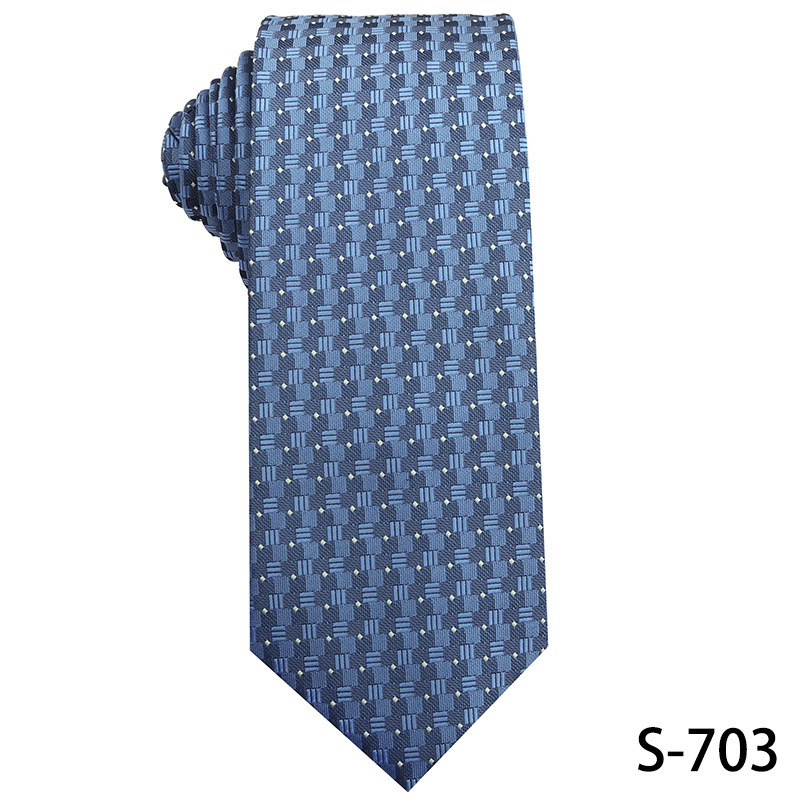 진한 파란색 신사 넥타이 남성 비즈니스 패션 폴리 에스터 실크 하이 엔드 작은 패턴 작은 격자 무늬 자카드 손으로 묶은 넥타이