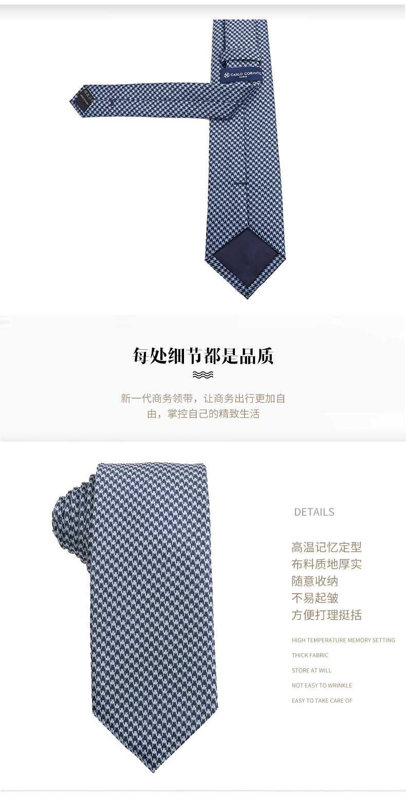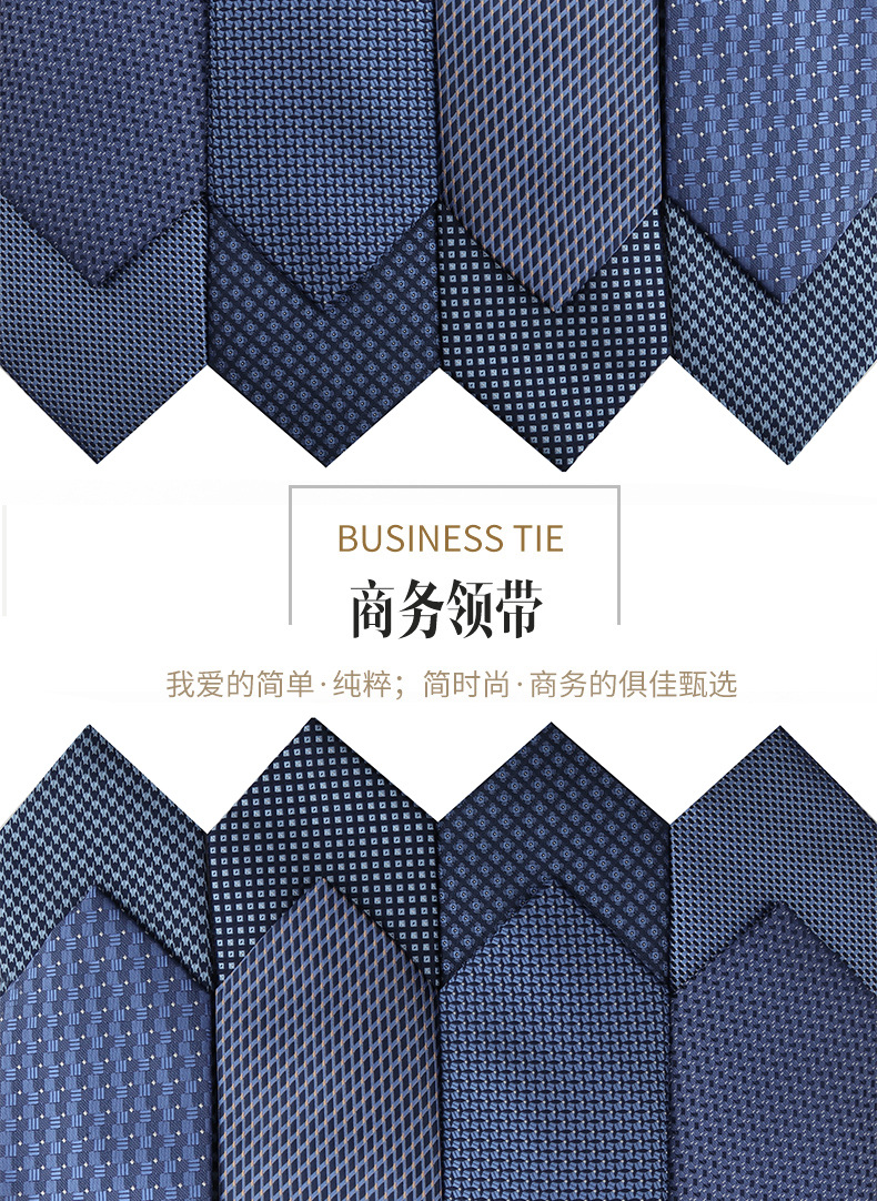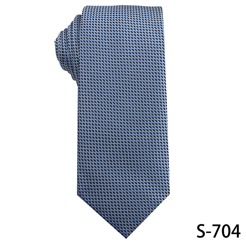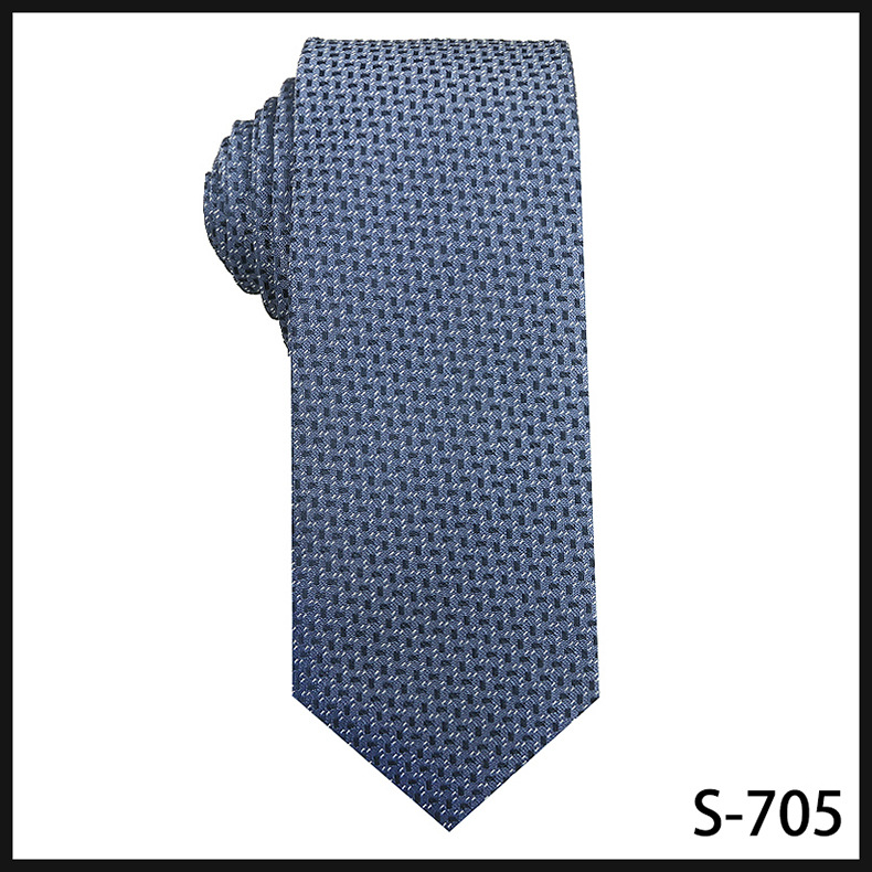 진한 파란색 신사 넥타이 남성 비즈니스 패션 폴리 에스터 실크 하이 엔드 작은 패턴 작은 격자 무늬 자카드 손으로 묶은 넥타이