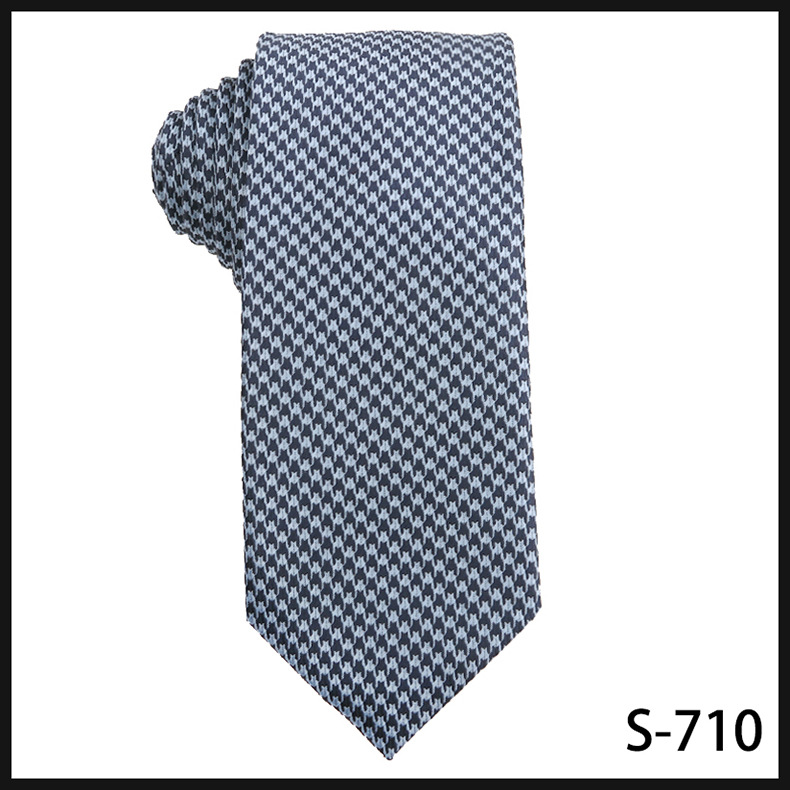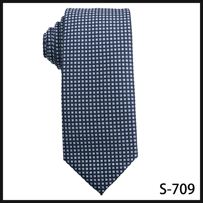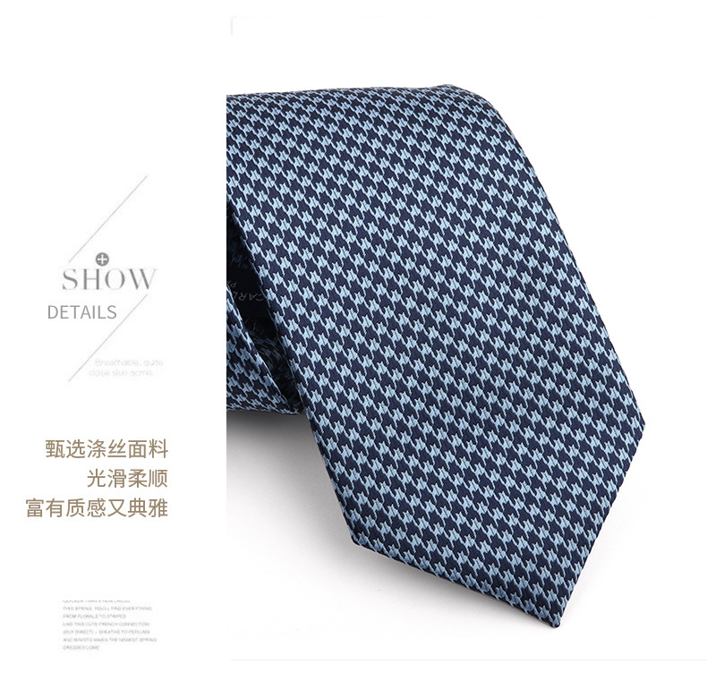 진한 파란색 신사 넥타이 남성 비즈니스 패션 폴리 에스터 실크 하이 엔드 작은 패턴 작은 격자 무늬 자카드 손으로 묶은 넥타이스토어 가기