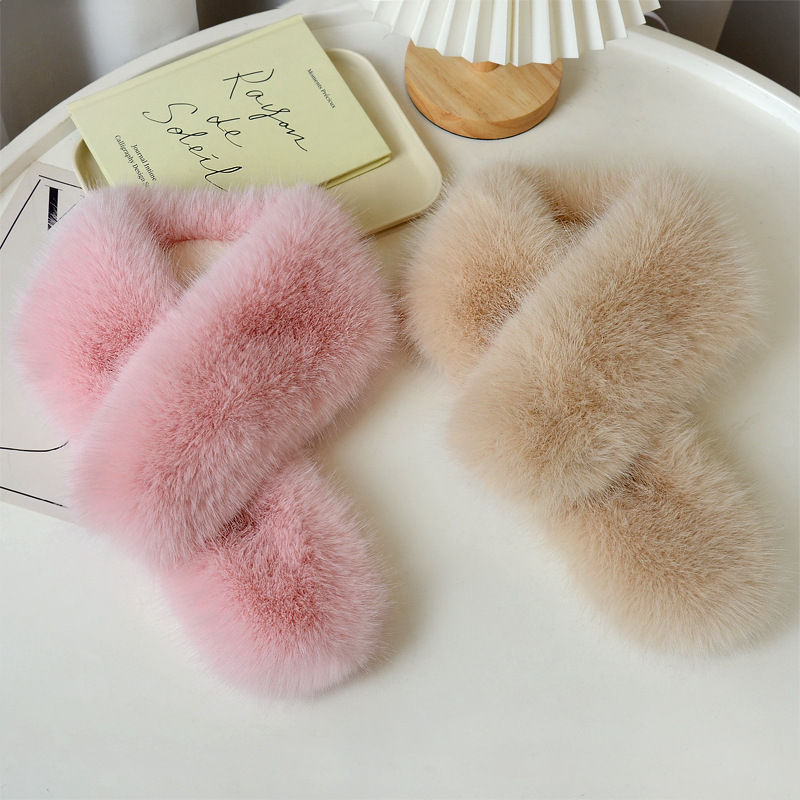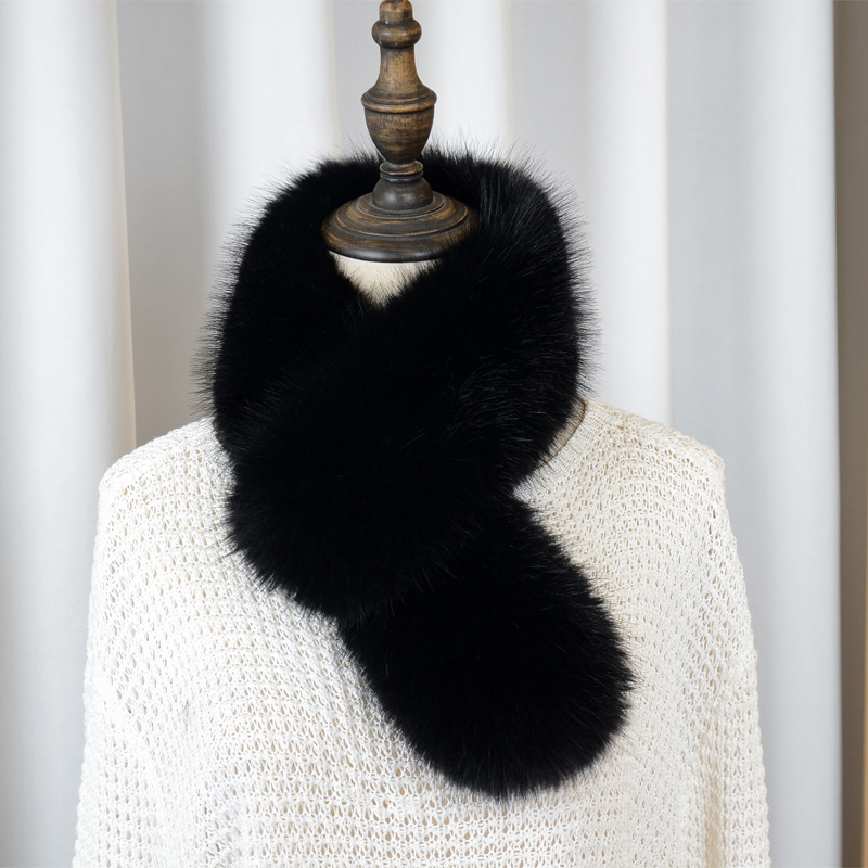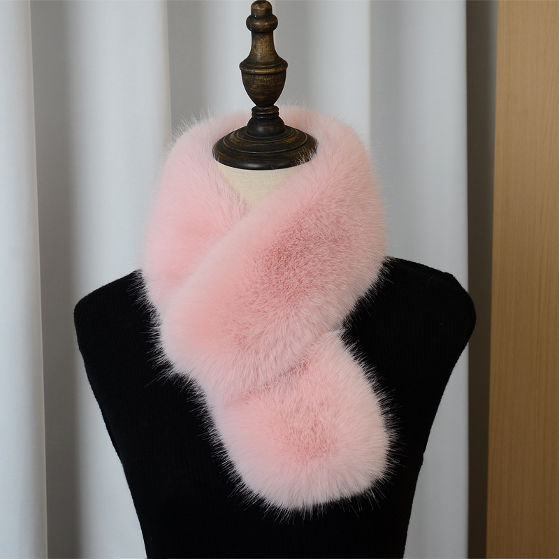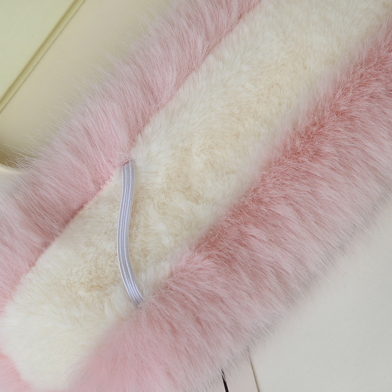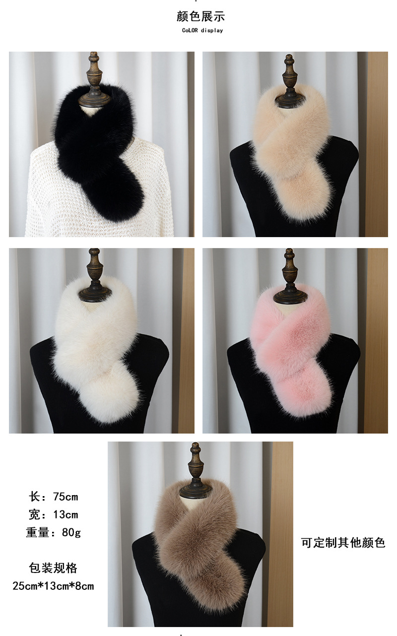 围脖采用双面毛绒设计 正面仿狐狸毛反面兔绒穿插佩戴 款式简约时尚百搭 毛质亲肤 柔软保暖性舒适