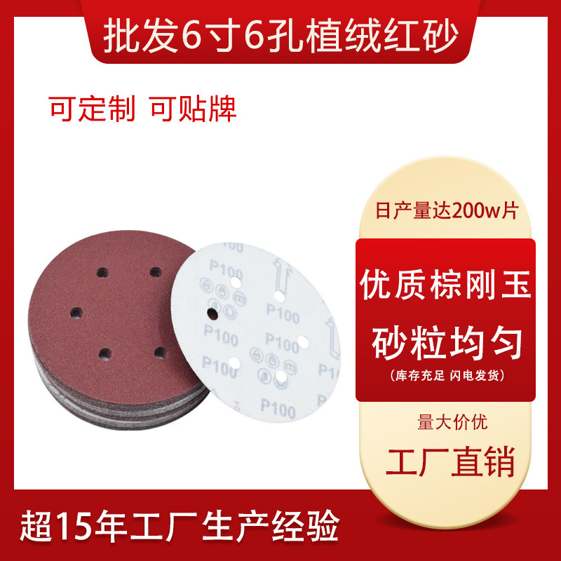 6 인치 6 홀 벨벳 사포 도매 150mm 벨벳 디스크 자체 접착 연마 시트 연마 빨간색 벨벳 사포 시트