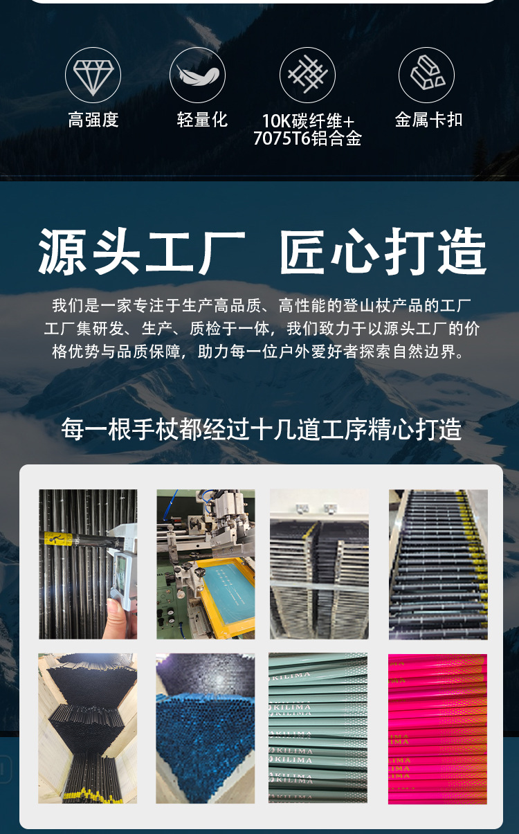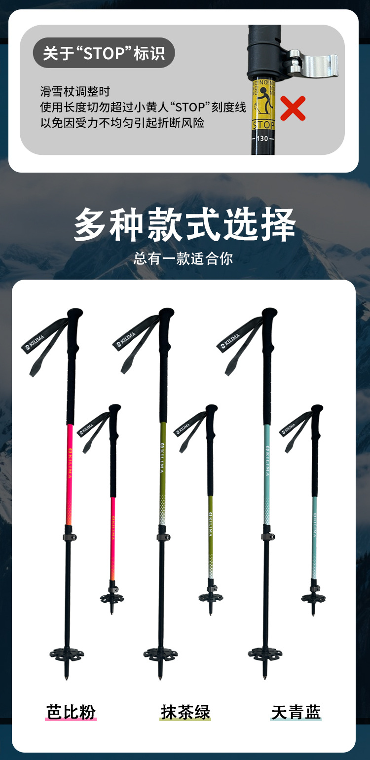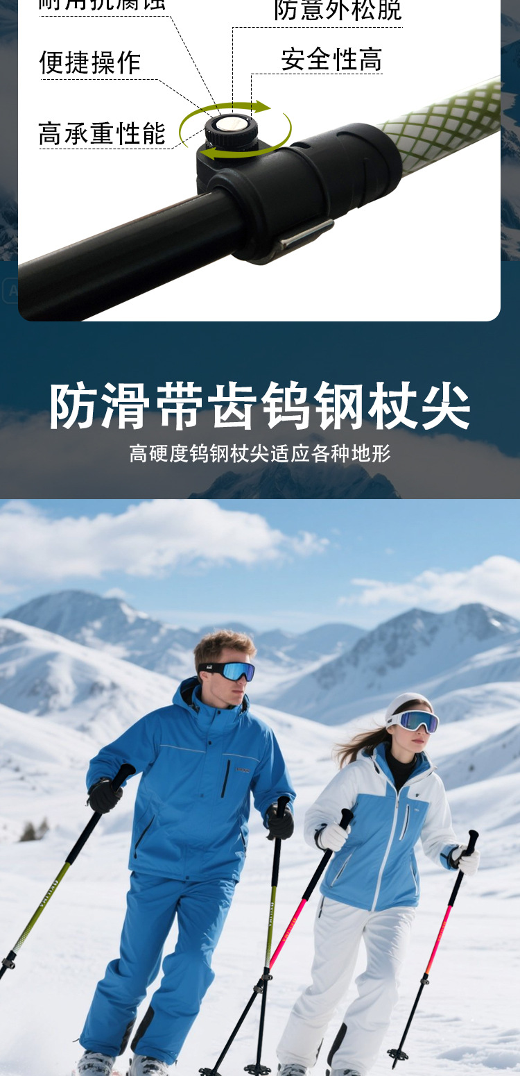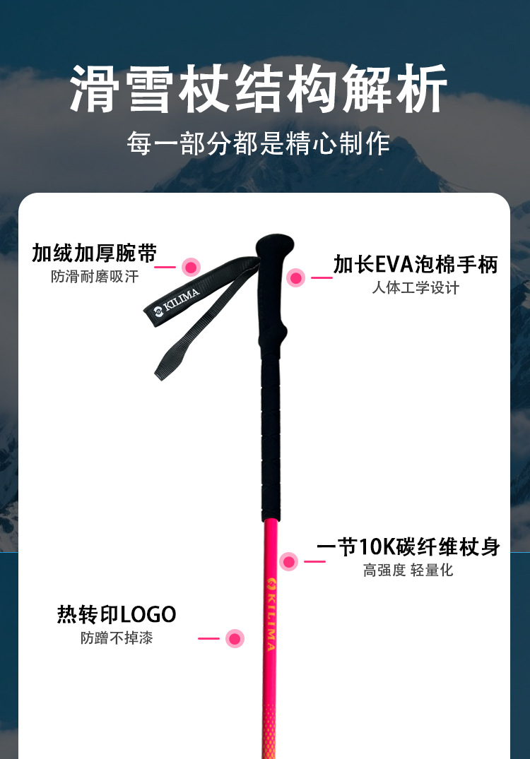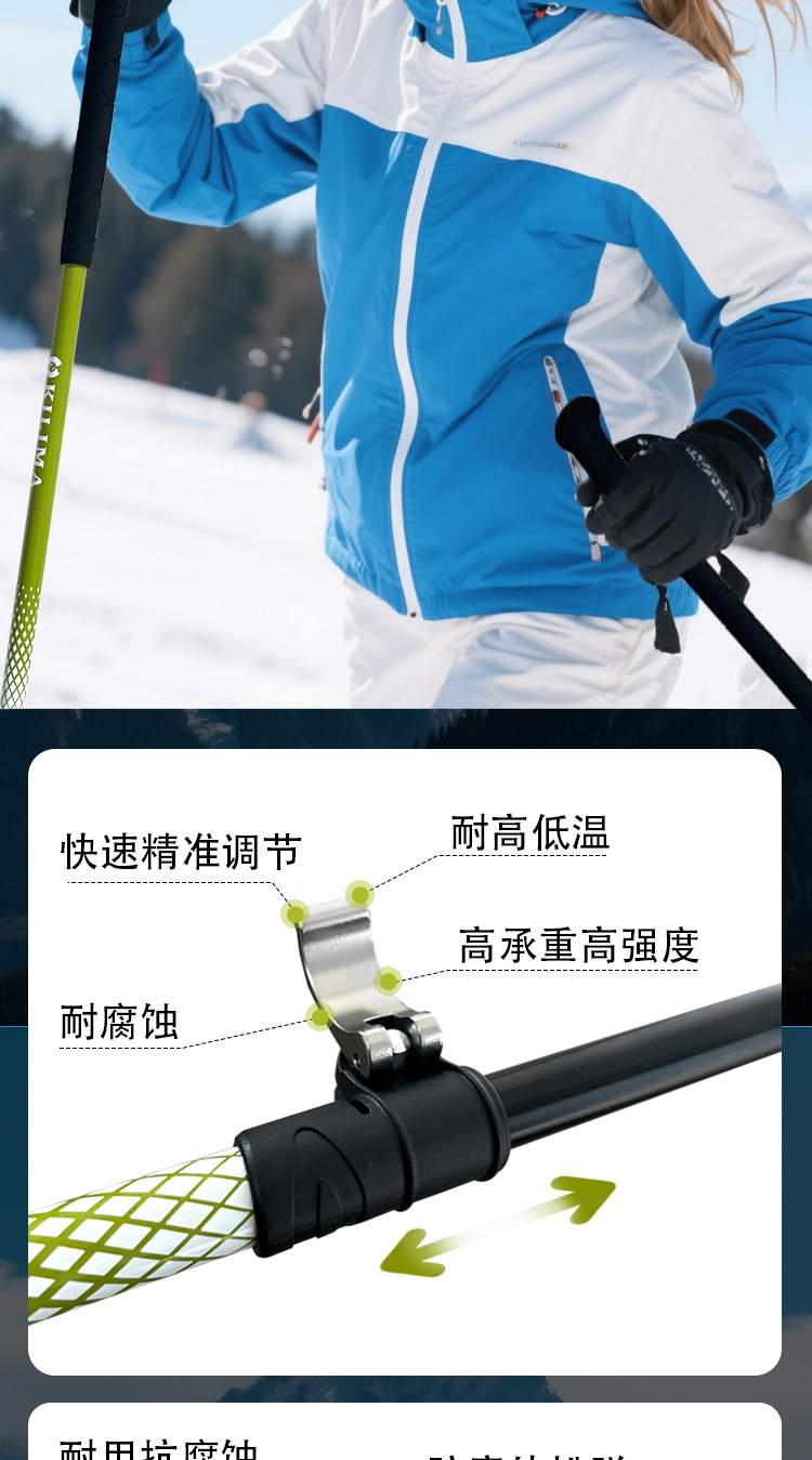 킬리마 스키 스틱 알루미늄 합금 + 10K 탄소섬유 텔레스코픽 경량 남녀 공용 아웃도어 스키 전문 등산 스틱
